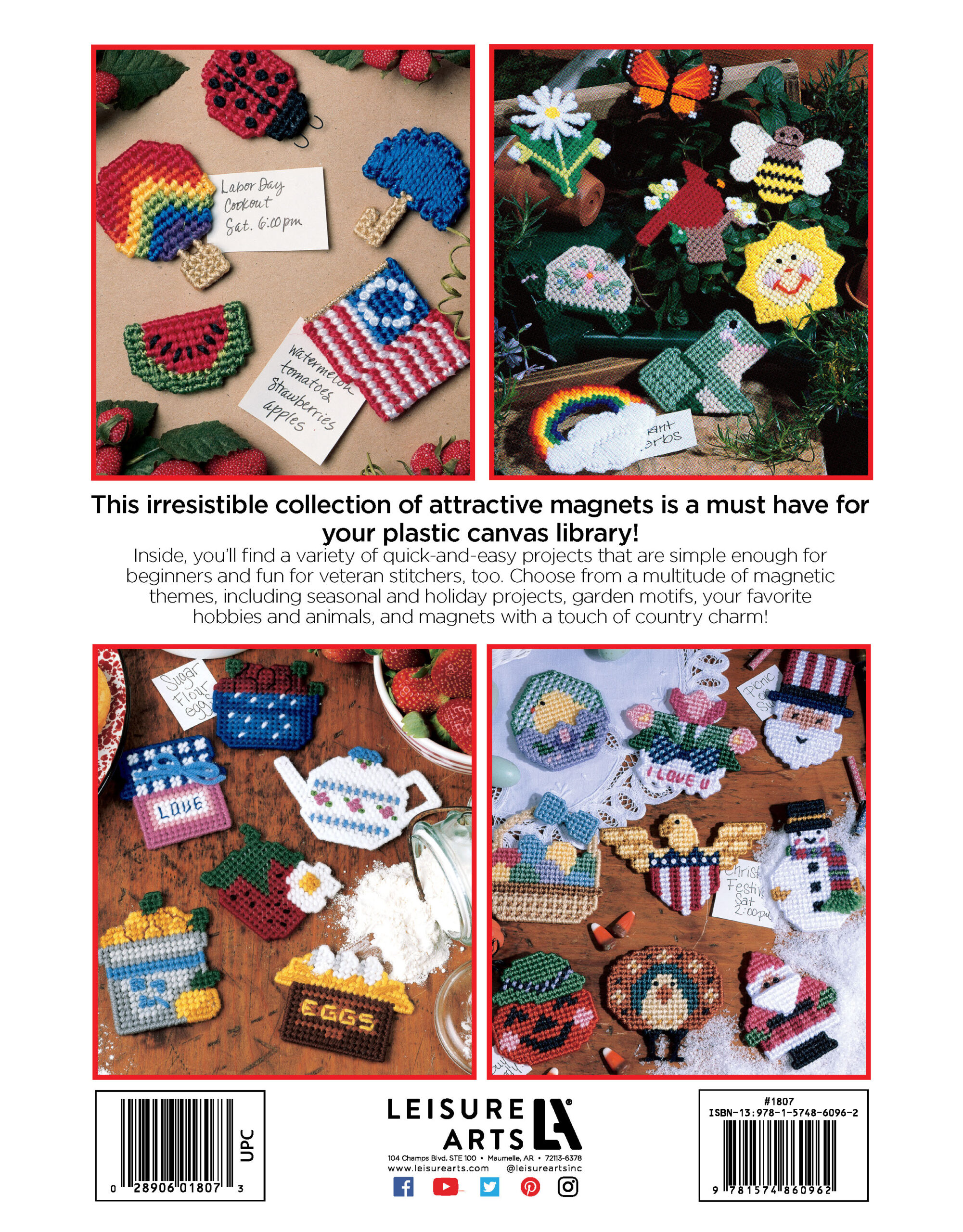 300+ Magnets In Plastic Canvas- If you're attracted to magnets, this is guaranteed to keep you mesmerized! This irresistible collection of designs includes a variety of quick-and-easy projects that are simple for beginners and fun for veteran stitchers, too. You'll find a multitude of magnetic themes, making this a must-have for your plastic canvas library. Designs include: Santa, animals, pets, food, hobbies, holidays, and more. 96 pages, soft cover.
