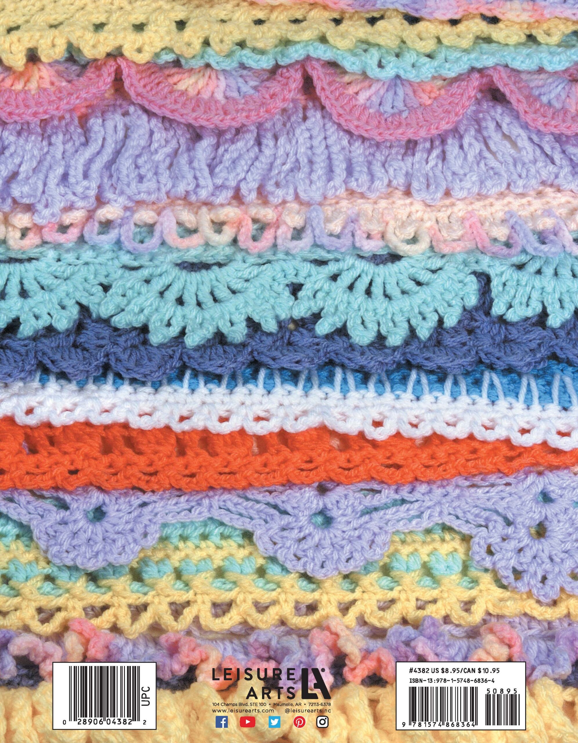 50 Crocheted Afghan Borders- No matter your creation, finish it off with a beautiful crocheted border. Whether you go wide and ruffled or narrow and tailored, your border will be the perfect finishing tough to any project. Choose from 50 different designs. These borders work great on afghans, but would work equally well on collars, cuffs, shirt bottoms, and pocket edges. 32 pages, soft cover.