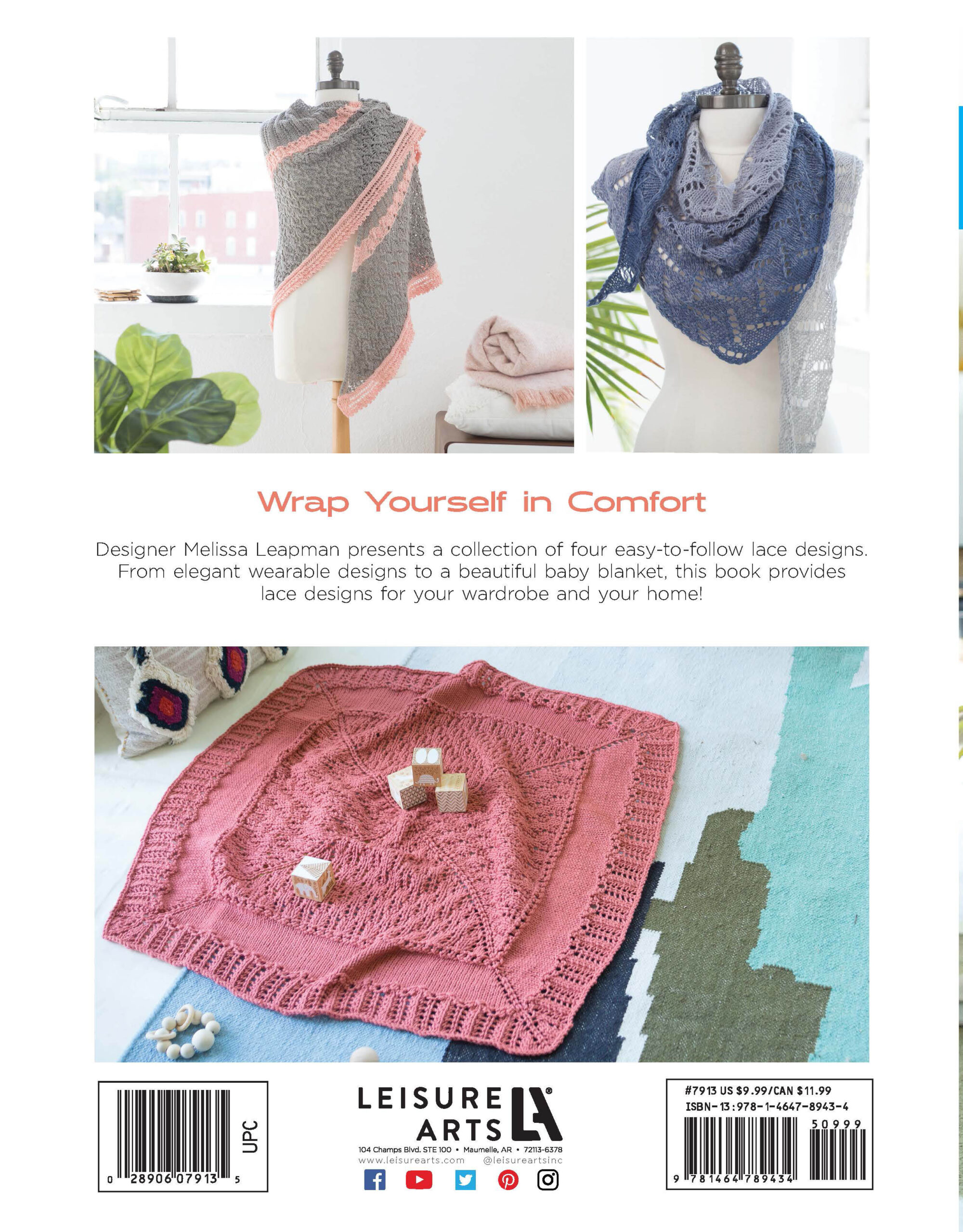 $9.95Wonderful Wearable Wraps Crochet- These six lacy wraps are the perfect fit for your wardrobe. So fun to crochet, each poncho, stole, and shawl is also lovely to wear with everything from blue jeans to dresses. Whether you're on your way to work, enjoying an evening out, or just going for a stroll, remember to wrap yourself in one of these feminine accessories. Patterns include: cross stitch shawl, diamonds & shells shawl, fan & trellis stole, lacy shawl, puff stitch stole, and slant stitch poncho. Designs call for size 1 super fine, 2 fine, 3 light and 4 worsted weight yarns and crochet hooks in US sizes G-6 and I-9. Finished wraps measure between approximately 17 1/2"x 60" and 66"x 25 1/2". Easy skill level. 20 pages in a softcover.