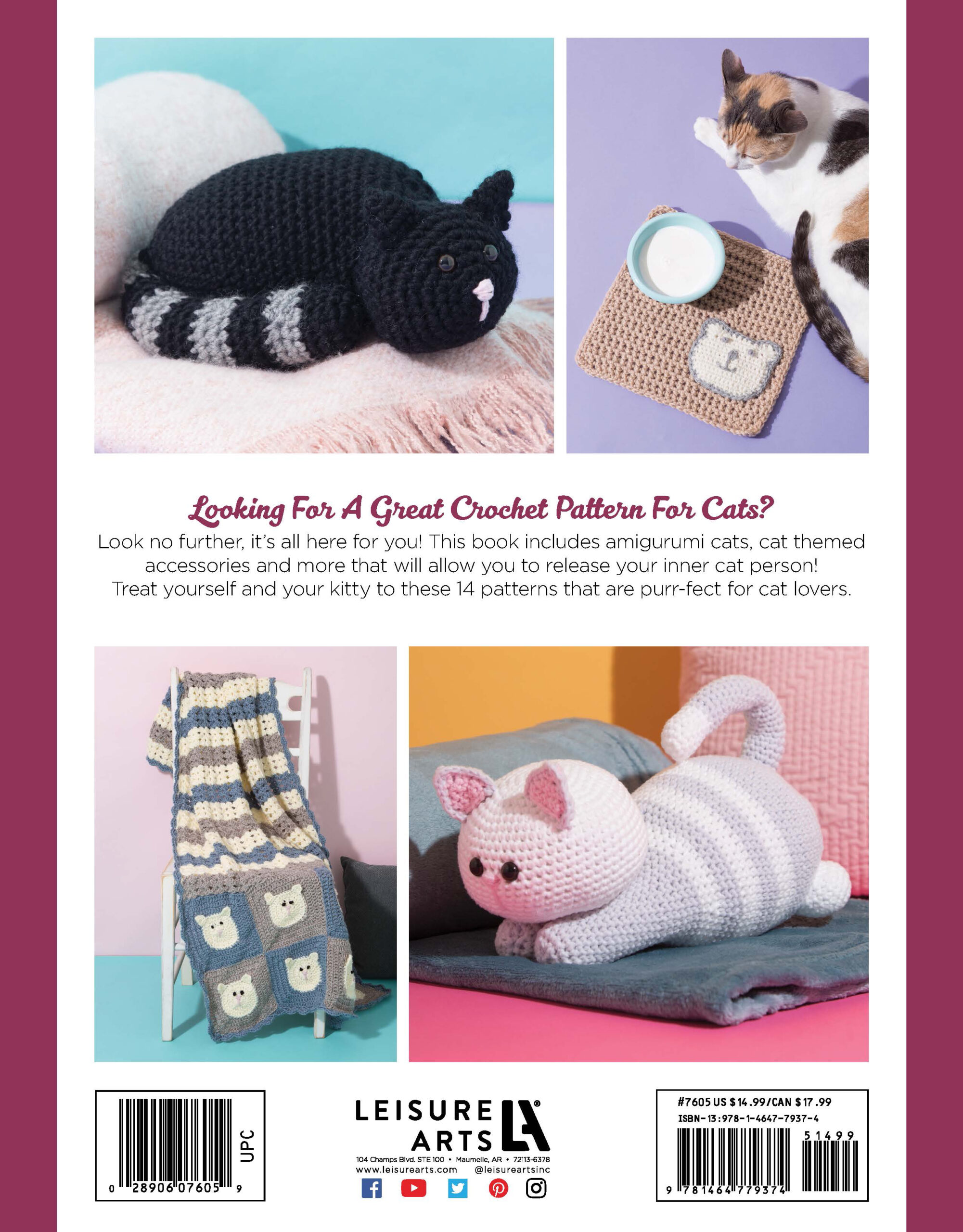$12.99Crochet Cool Cats- 14 frisky feline crochet projects rated for the beginner skill level. Each project is paired with stories about a girl named Kimmie and her time volunteering for cats at a shelter. Each design has step-by-step instructions with pictures and supply lists. Choose from 9 unique cats, a hideaway cat house, cat applique, rug, pillow, or blanket. All patterns are for basic skill level. 64 pages, softcover.