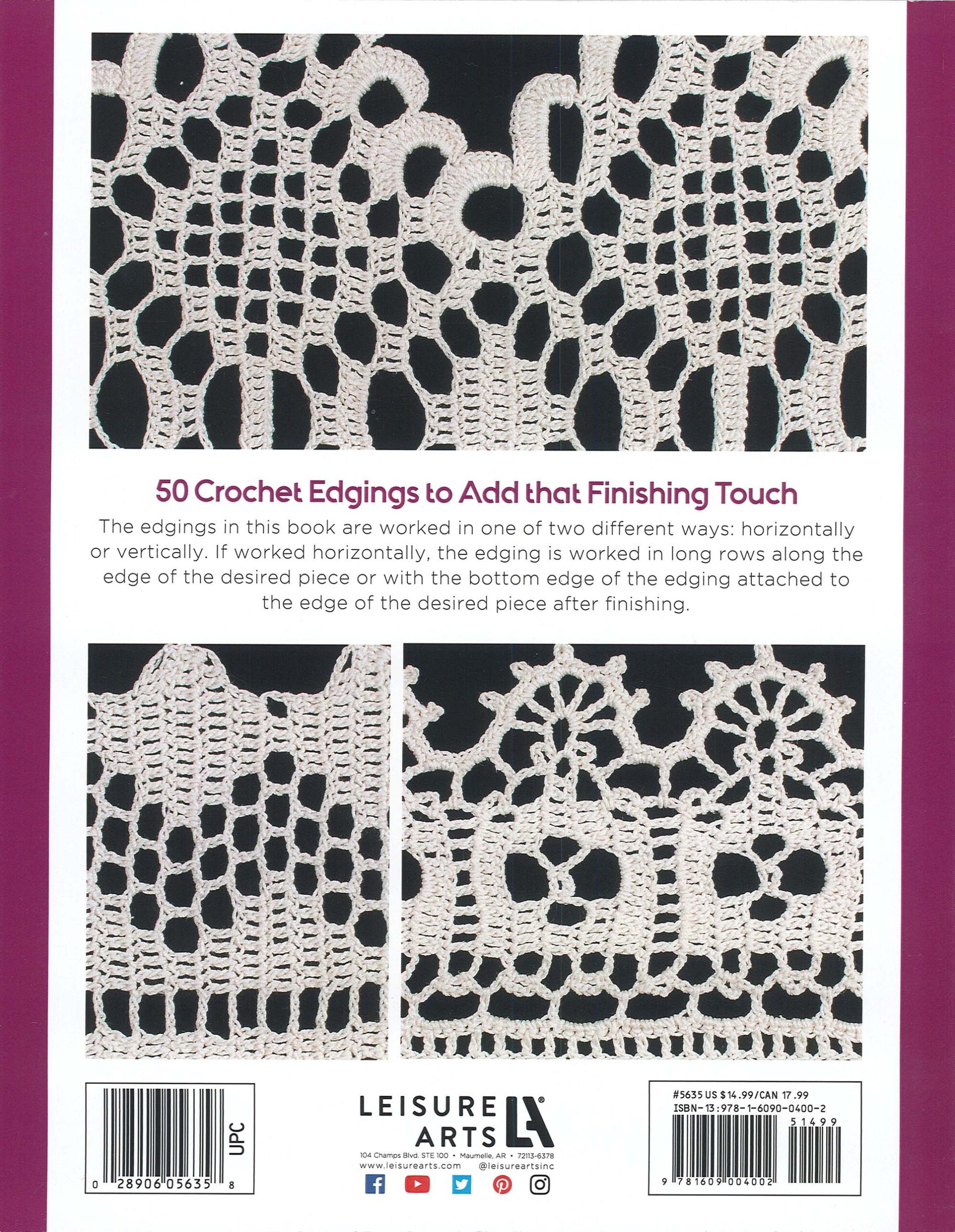 $14.9950 Fabulous Thread Crochet Edgings- If you have a finished project that seems to be missing something, look no further. These 50 crochet edgings add the perfect final touches to home and fashion projects. The wide variety of designs offers something for everyone. Step-by-step instructions and helpful stitch guides make it easy to embellish all your projects. Designs include: scallops, pinecones, flowers, pineapples, crowns, and more. Thread crochet is traditionally done in US size 0 lace weight yarn. Beginner skill level. 64 pages, soft cover.