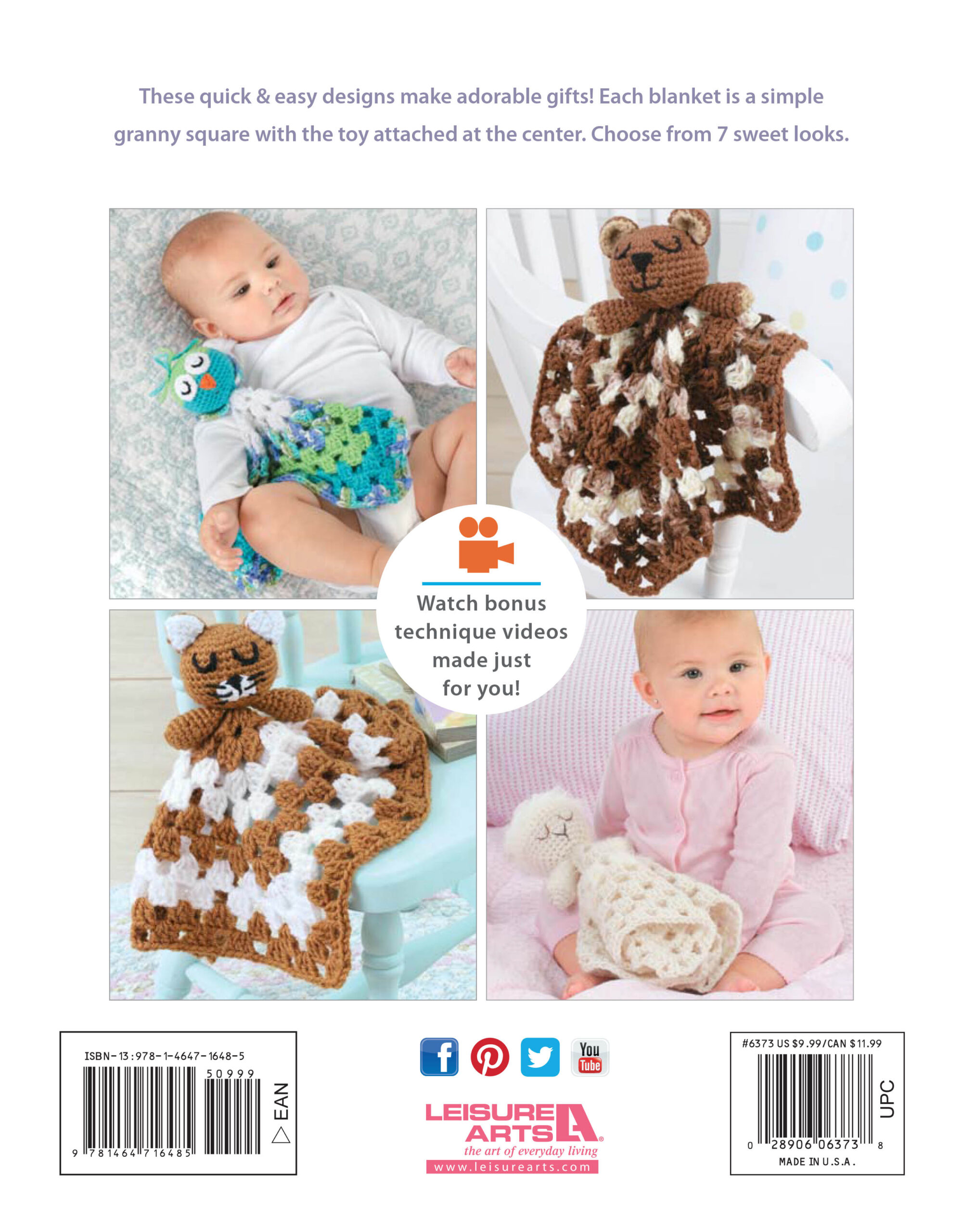 $9.99Animal Blankets Crochet- Cover them in creativity! 7 hooded animal blanket designs are perfect for playtime or snuggling. Embrace your child with love as they embrace their imagination. Let them escape to an imaginary world where animals run wild and free. Designs include: giraffe, ladybug, mermaid, sock monkey, and more. Easy to crochet patterns made with colorful medium weight yarn. Applique accents add fun details. 32 pages, soft cover.