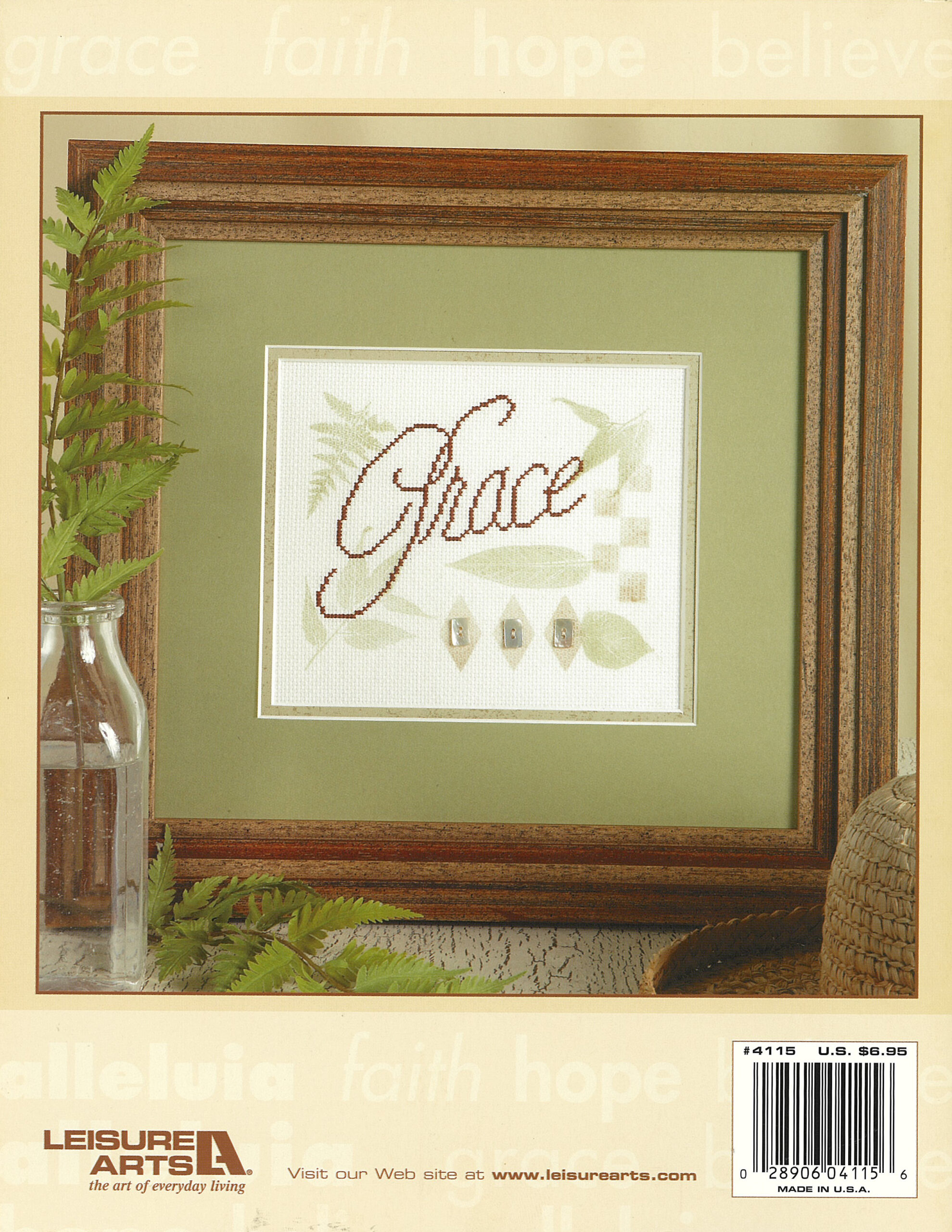 $6.95Leisure Arts Stamp 'N Stitch Inspirational Cross Stitch Book- Try this new technique that combines cross stitch and rubber stamping. Simply stamp and stitch your way to quick, creative, and inspirational home decor. All you do is stamp your Aida or linen fabric with ink, let it dry, cross stitch the charted word, embellish, frame, and you're done. Five extra-quick projects come with step-by-step instructions and diagrams. Designs include: alleluia, believe, faith, grace, and hope. 12 pages, soft cover.