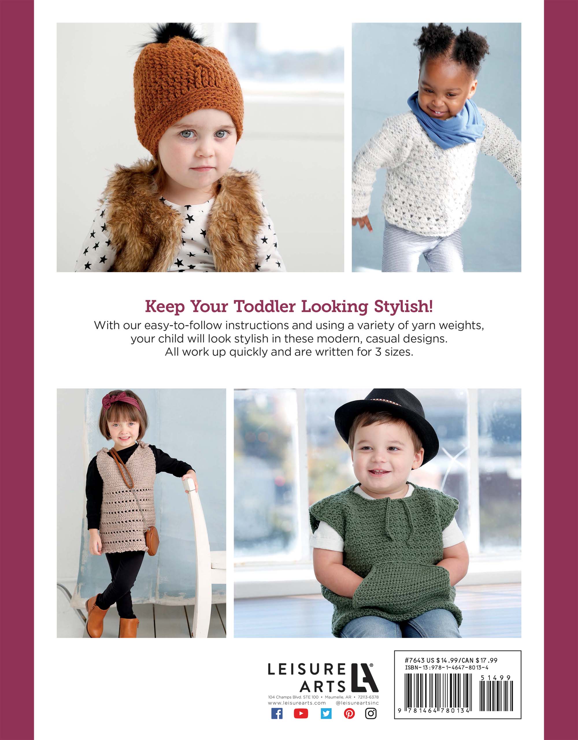$12.99Crochet Lil' Hipsters- 16 fashion favorite crochet projects to keep the babies in your life looking stylish. All designs have step-by-step instructions with pictures and supply lists. Designs include: cowl, top down sweater, tunic top, pullover, sweater cocoon, side poncho, pants, vest with pockets, speckled sweater, cowl jacket, slouchy hat, hooded vest, hooded sweater, shoulder tie dress, seamless vest and yellow tank top. All patterns come with three sizing options: 1T-2T, 2T-3T and 3T-4T. General required materials include: US size 2 fine, 4 medium and 5 bulky weight yarns and size G-6, 7, H-8 and J-10 crochet hooks; 4, 4.5, 5 and 6 millimeter hooks. Some projects also require yarn needles and buttons. Beginner skill level. 64 pages, soft cover.