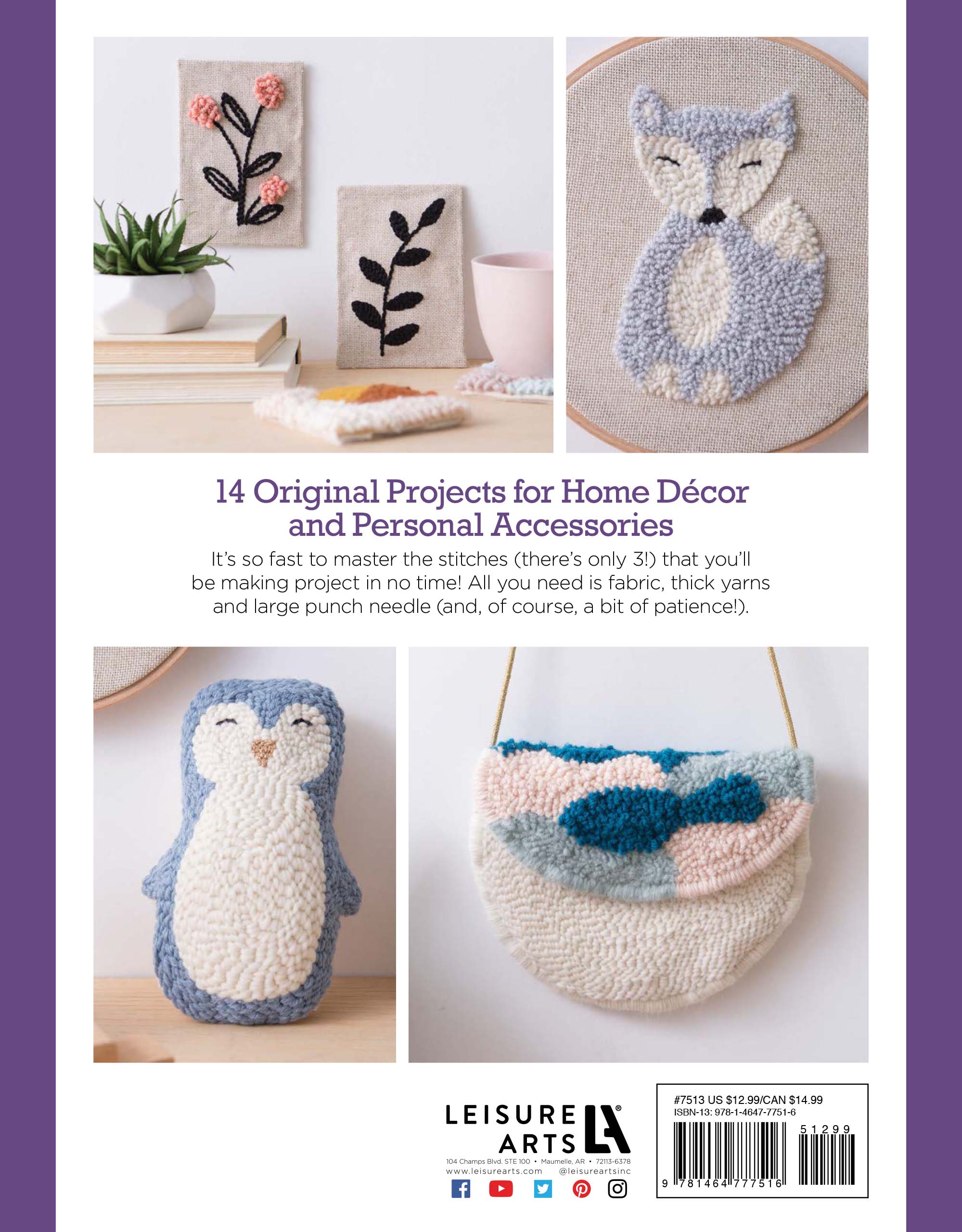 $12.99Modern Punch Needle- Punch out some new accessories for your home and yourself with these easy-to-follow projects. With only 3 types of stitches and 3 materials, the art of punch needle is easy to master and full of possibilities. Projects include: abstract landscape frame, arctic fox wall hanging, mermaid pouch, pin trio, penguin toy, purse and more. Projects call for US size 1 super fine, 4 medium and 5 bulky weight yarns as well as a wide variety of punch needle sizes and types. Includes a full guide to materials, tools, threading punch needles, setting up your hoop or frame, transferring patterns, stitches and finishing each project. Includes traceable templates for each punch design. Most templates require resizing through a photocopier. Finished projects measure between approximately 1 1/2" and 15 3/8"x 9". Beginner skill level. 80 pages in a softcover.