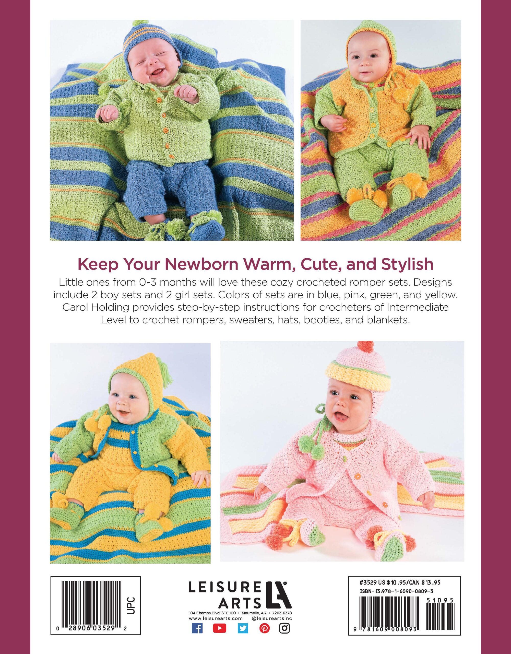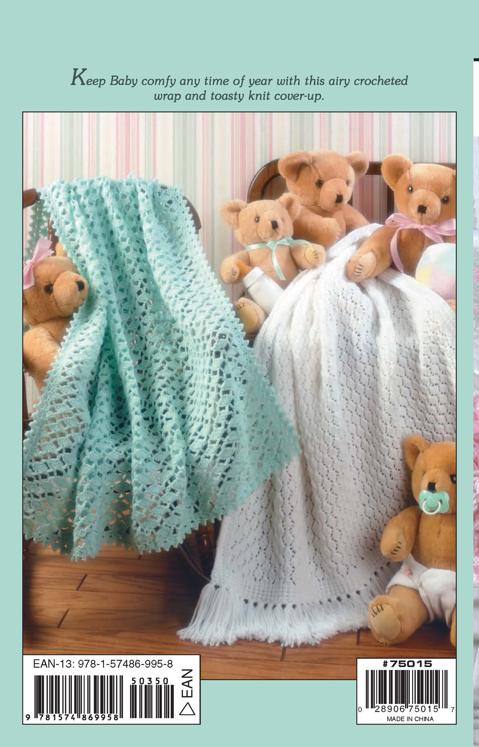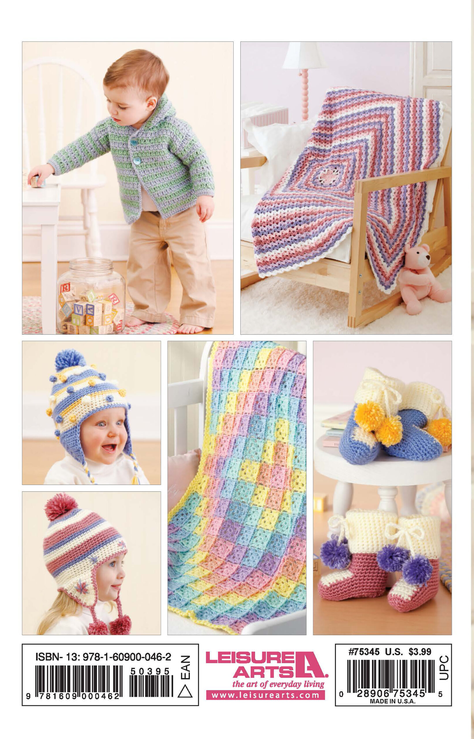 $3.50Snuggletime Baby Afghans Crochet- This small take along has easy knit and crochet patterns for baby afghans. These designs can be worked up while you travel or have a few minutes here and there. Designs include: stripes, hearts, lace, chevron, and more. A family with a new baby will love these throws to keep their little one snuggly and warm. Pocket size has 28 pages, soft cover.