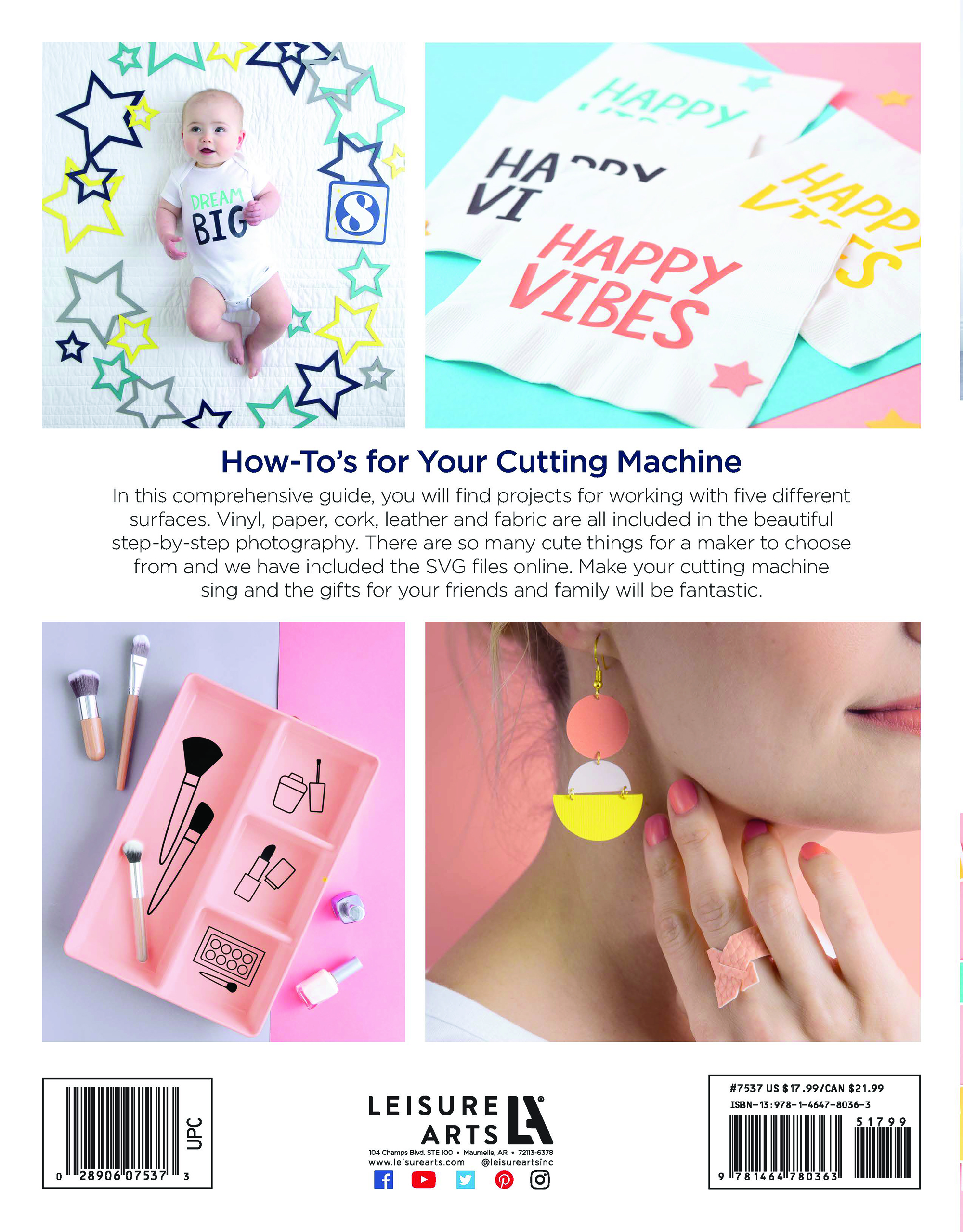 Leisure Arts eBook Crafting with Cutting Machines- 46 cutting machine projects using Vinyl, Paper, Cork, Leather & Fabric. Craft and cut your little heart out with the help of this Crafting with Cutting Machines eBook. Professional blogger and DIYer Cori George has compiled a whopping 46 cutting machine projects for you and your home, your party needs, and one lucky baby. She’ll also show you how to use the power of your cutting machine to amp up your style and get organized. Projects include Cork Earrings, Simple Leather Clutch, Plus Sign Quilt, Baby Milestone Cards, Popcorn boxes, Fabric Bins, and so much more. You’ll not only work with your classic BFFs Paper and Vinyl, but Cori will introduce you to cutting cork, leather, and fabric too. So, say goodbye to those scissors and “hello – I think I love you” to your cutting machine. 222 page, PDF Digital Download.