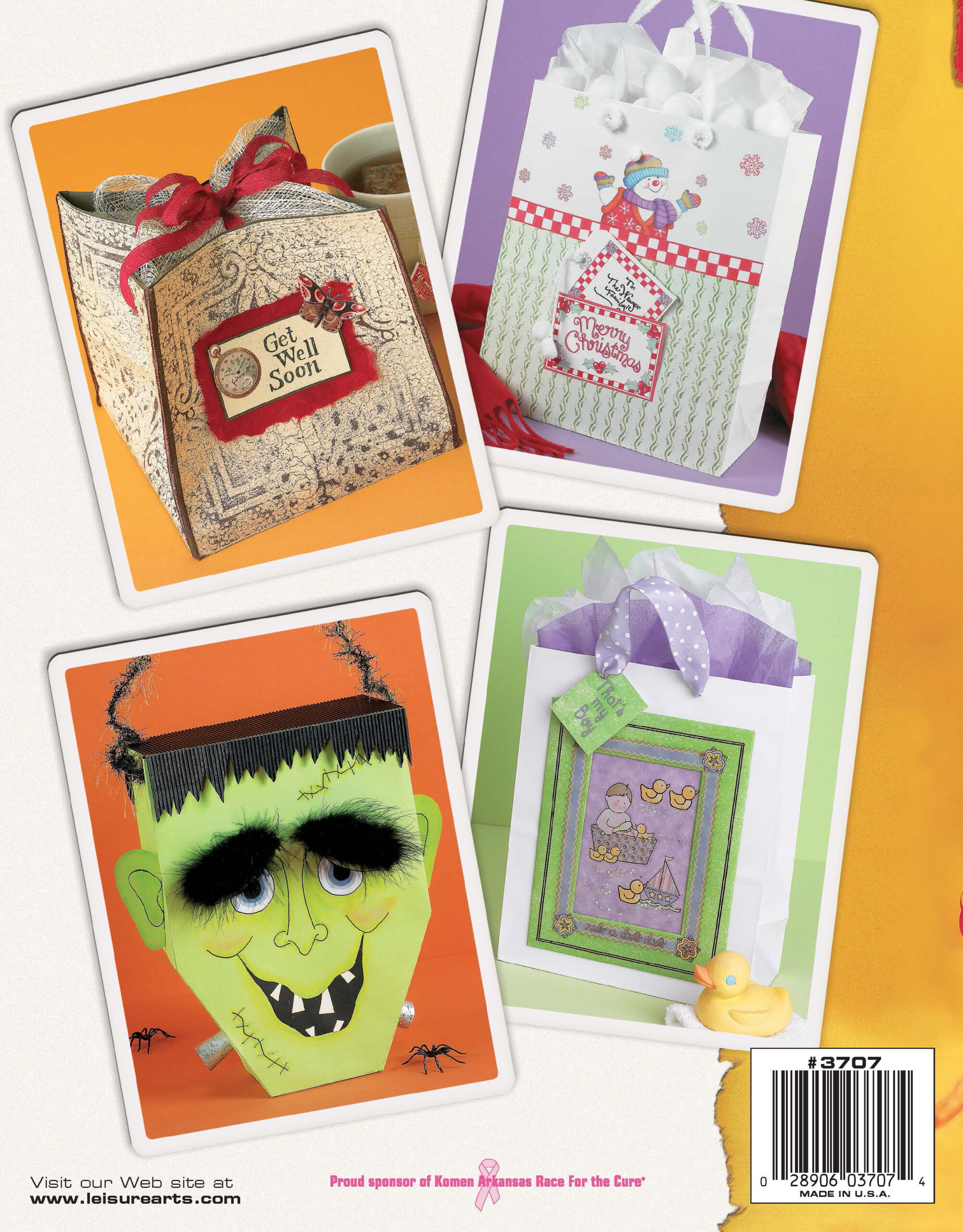 Leisure Arts Gift Bag Pizzazz eBook- Make gifts extra special with handmade gift bag designs. Customize your own paper gift bags wit a variety of papers, stamps, embellishments and inspiration from these simple projects. Designs include: love, thank you, get well soon, best friends, laced birthday, round birthday, silver birthday, wedding, graduation, Christmas and many more. Includes step-by-step instructions for recreating each design. 27 pages, PDF download.