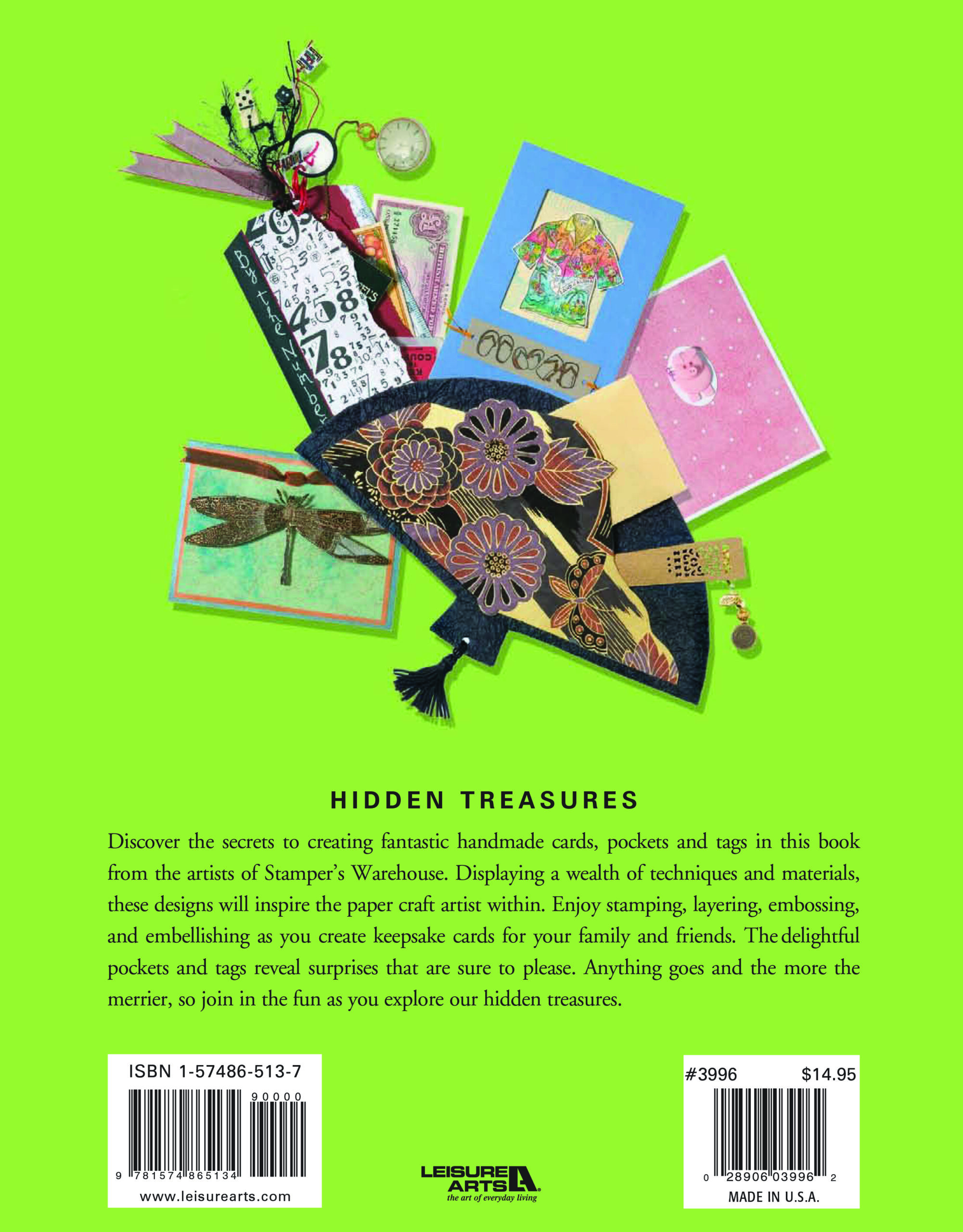 Leisure Arts Hidden Treasures Pockets, Tags And Cards eBook- 121 beautiful card, pocket, and tag creations from the designers of Stamper's Warehouse. Features projects, techniques, and materials include: pockets, tags, ribbons, and more. Includes complete instructions for assembling projects and finishing. 66 pages, PDF download.
