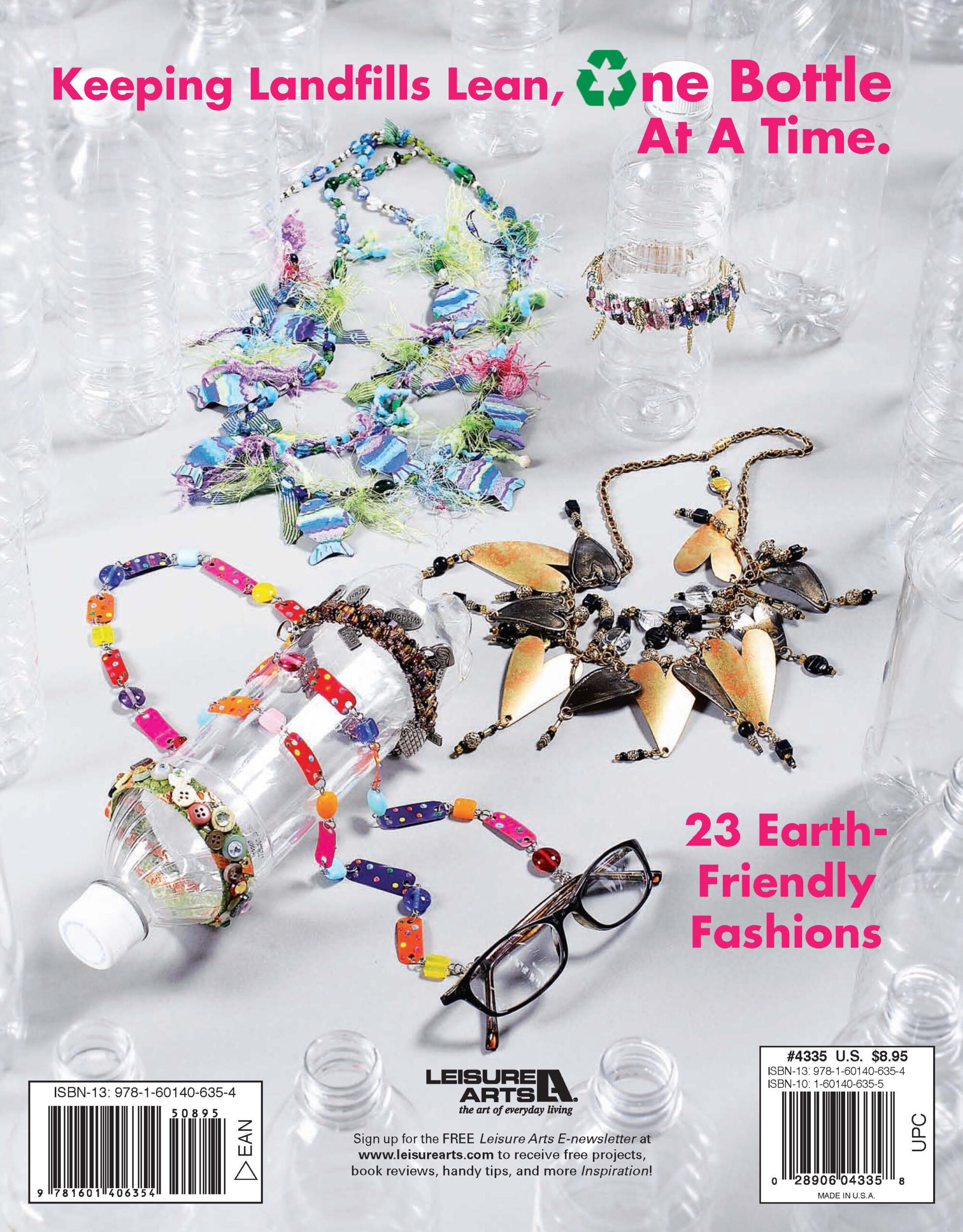 Leisure Arts Green Bling Turning Bottles Into Bangles eBook- Sooth your eco-qualms while revamping your sense of style with these stylish recycled plastic projects. 23 jewelry designs include: micro-beaded foil bracelet with bangles, foil paper bangles, yarn-wrapped bracelets with beads, collage bracelets, wrist watch and more. Projects generally require plastic water bottles, an assortment of embellishments like beads and charms, beading wire, string, adhesive backed fabric, pliers, wire cutters and scissors. Includes step-by-step instructions for creating each project. 34 pages, PDF download.