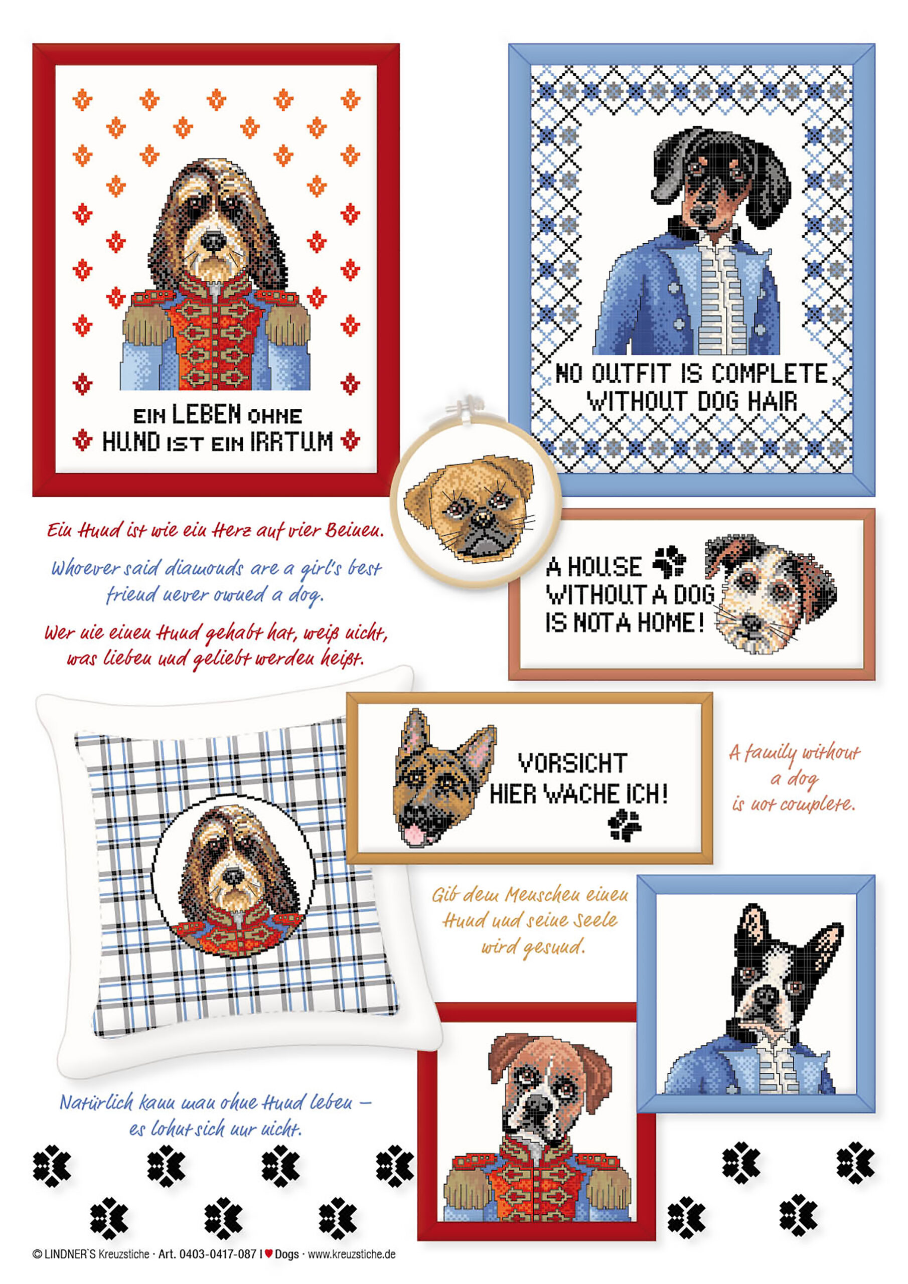 $7.99Lindner's Cross Stitch Charts feature classic embroidery themes and motifs reimagined by German designers Michael and Gudrun Lindner. All design charts are full-color counted cross stitch. Use these chart designs to add a decorative touch to curtains, table linens, kitchen towels, pillows and much more. I Heart Cats ePattern- Stitch up a fancy cat design from this collection of patterns. Includes a variety of cat face design shapes and coat patterns. Some cat designs are wearing suit jackets. Large designs include borders for the smaller dog motifs and large geometric backgrounds that can be mixed and matched. Includes a page with embroidery tips and tricks, illustrated stitch guides, color recommendations and general instructions in several languages. Additionally includes upper and lowercase alphabet charts for customization. 5 pages, PDF download.