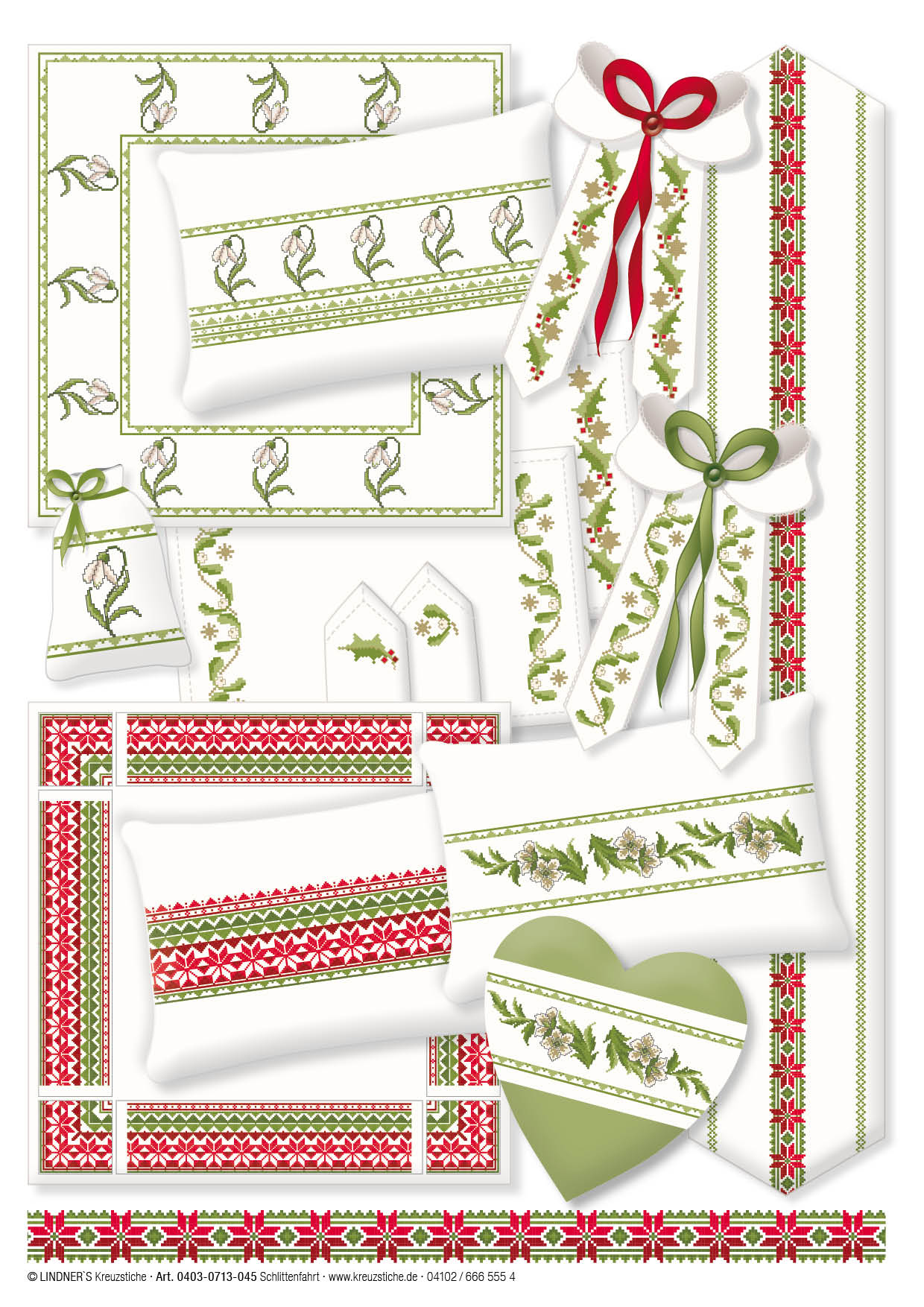 Lindner's Cross Stitch Charts feature classic embroidery themes and motifs reimagined by German designers Michael and Gudrun Lindner. All design charts are full-color counted cross stitch. Use these chart designs to add a decorative touch to curtains, table linens, kitchen towels, pillows and much more. Sledding ePattern- Includes a wide range of beautiful winter motifs like: a skier, ice skater and 2 people sleighing, a carousel horse, Norwegian winter border patterns, flowers snow flakes and more. Large border designs include flower and ice inspired Norwegian patterns and pretty flowers with triangular edging. Largest motif measures approximately 51 x 251 stitches. Includes a page with embroidery tips and tricks, illustrated stitch guides, color recommendations and general instructions in several languages. 5 pages, PDF download.