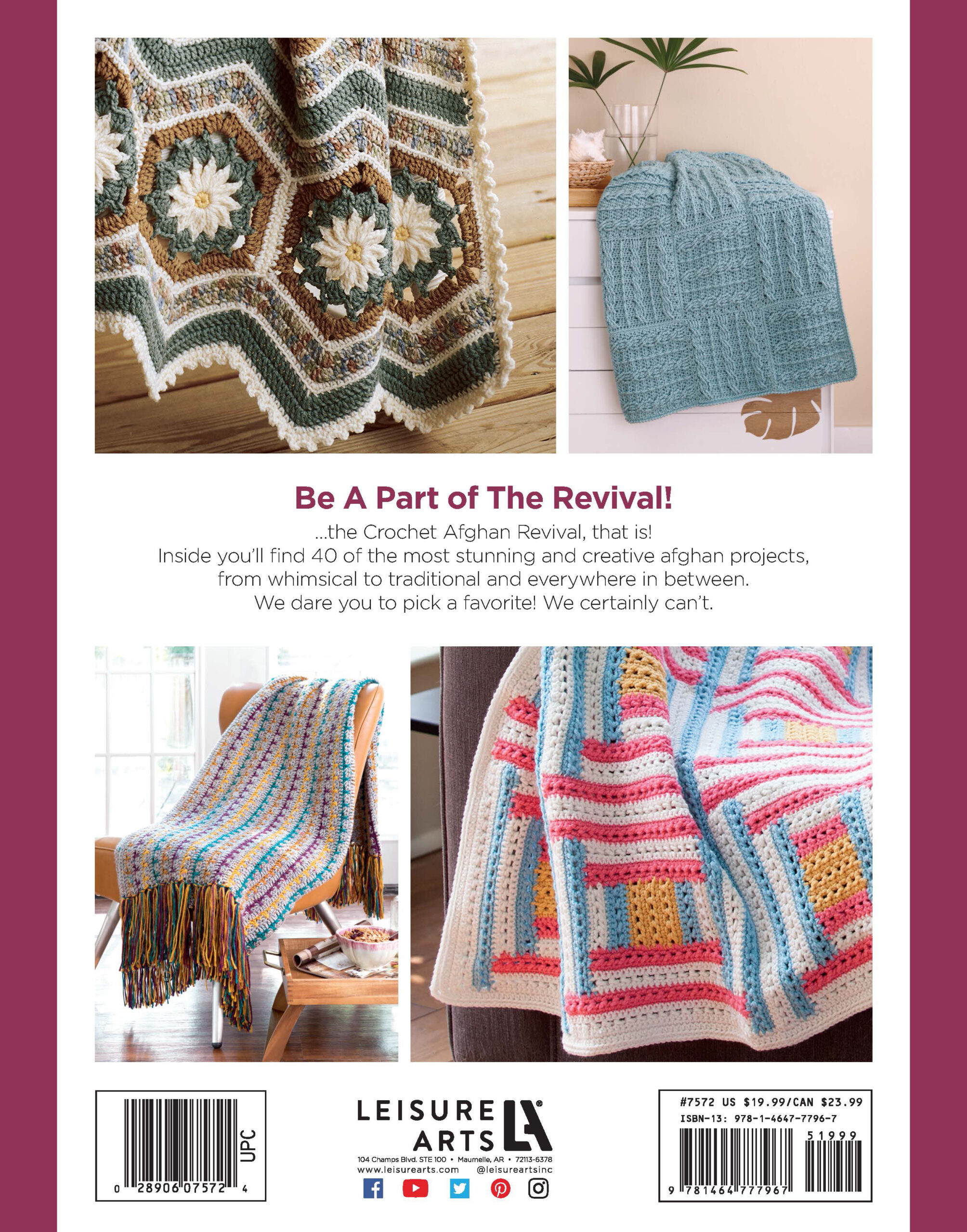 $5.99Leisure Arts Crochet Afghan Revival Cables 'n Ribs Throw ePattern- Revive the art of afghan crochet with simple cable and ribbed texture design. Cable 'n Ribs design features blocks of cable textured crochet attached with alternating cable directions. Project can be made using US size 4 worsted weight yarn and a size I-9, 5.5 millimeter, crochet hook. Includes instructions, stitch guides and a general guide to crochet. Finished afghan size measures approximately 48 1/2"x 64 1/2". Intermediate skill level. Originally published in LEA7572 Leisure Arts Crochet Afghan Revival Book. 10 page PDF download.