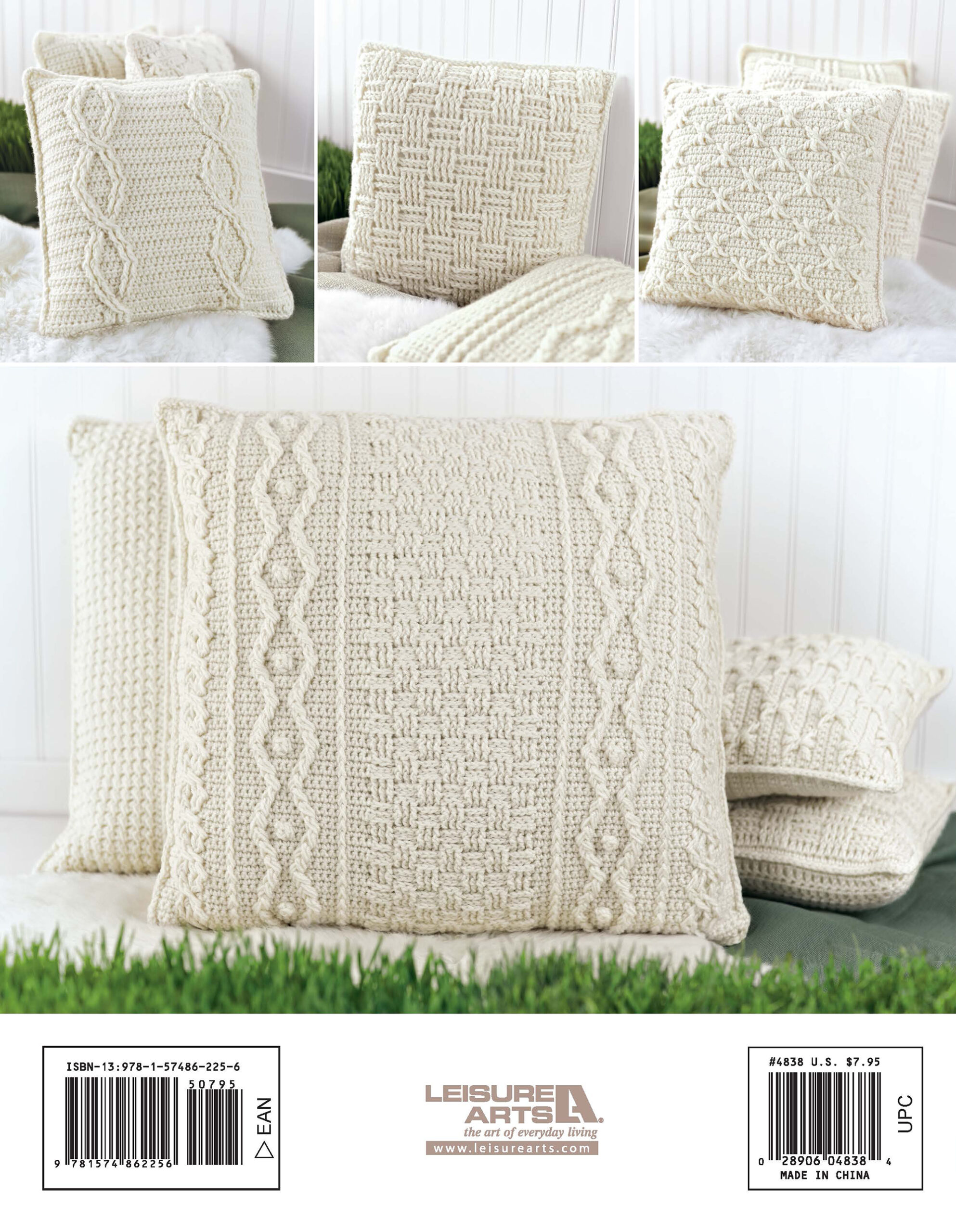 Leisure Arts eBook Aran Pillows to Crochet- Classic and timeless, Aran pillows are the perfect accessories for every décor. Becky Stevens designed the seven crochet patterns with plenty of interesting textures, mostly from simple post stitches. The pillows are sized to fit 24" or 14" pillow forms, so finishing is also a breeze. They’re wonderful for housewarming gifts. 26 page, PDF Digital Download.