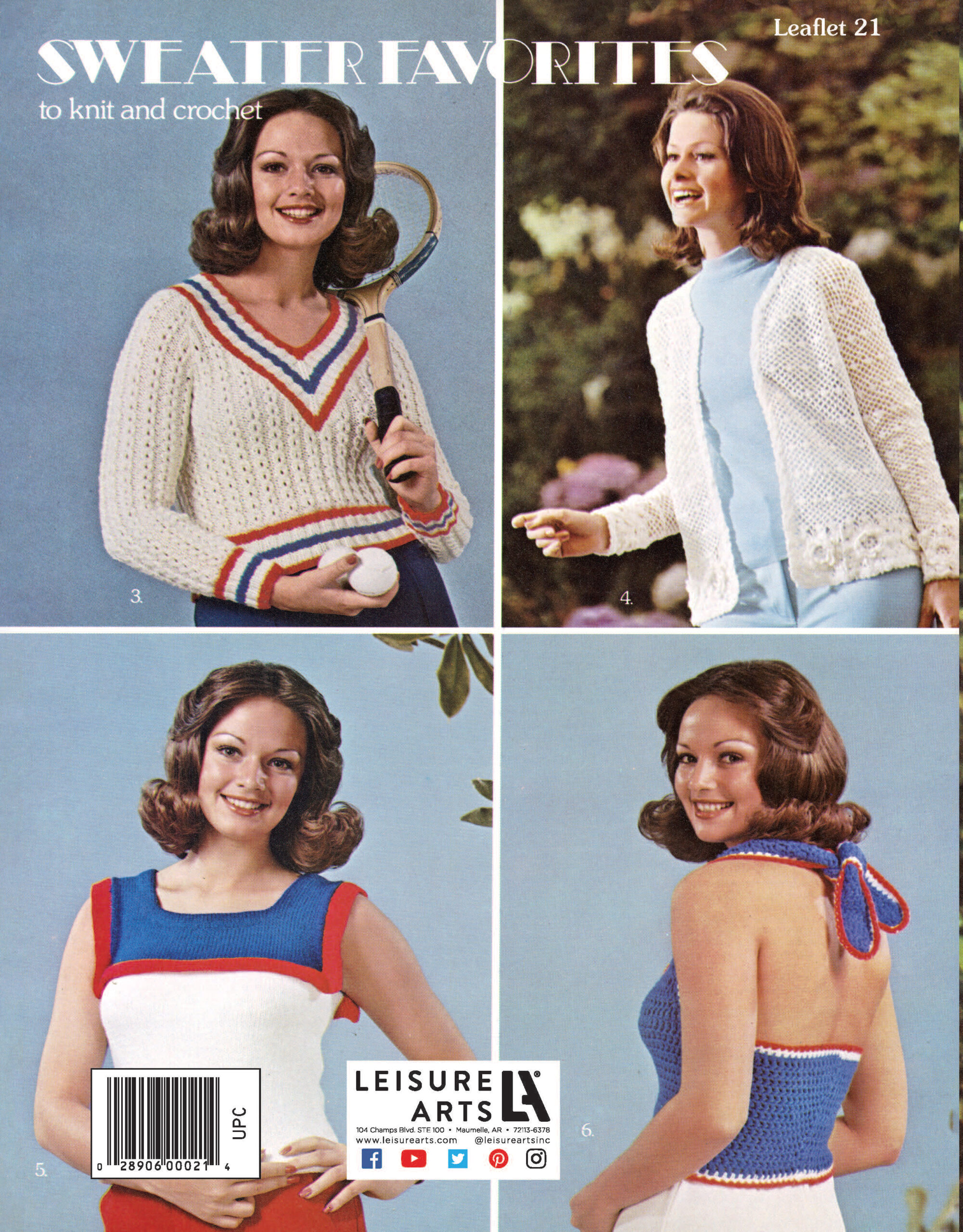 $7.99Leisure Arts Boys Sweaters To Knit And Crochet eBook- Create the perfect cozy sweaters for gradeschool boys with this original leaflet from Leisure Arts. This vintage pattern book includes knitted warm-up pullover, knitted here's the pitch pullover, crocheted home run tee shirt, knitted double header pullover, crocheted high fly vest, and knitted time out cardigan. Projects call for size 2 sport and 4 worsted weight yarns, US size 4, 6, 7, 10, and 11, straight knitting needles, and US size G-6 and J-10 crochet hooks. Includes row-by-row instructions for each panel of each projects, with sizing options for US boys sizes 8-14. Originally published as Leisure Arts Leaflet 17, Boys Sweaters To Knit And Crochet. 4 pages, PDF download.