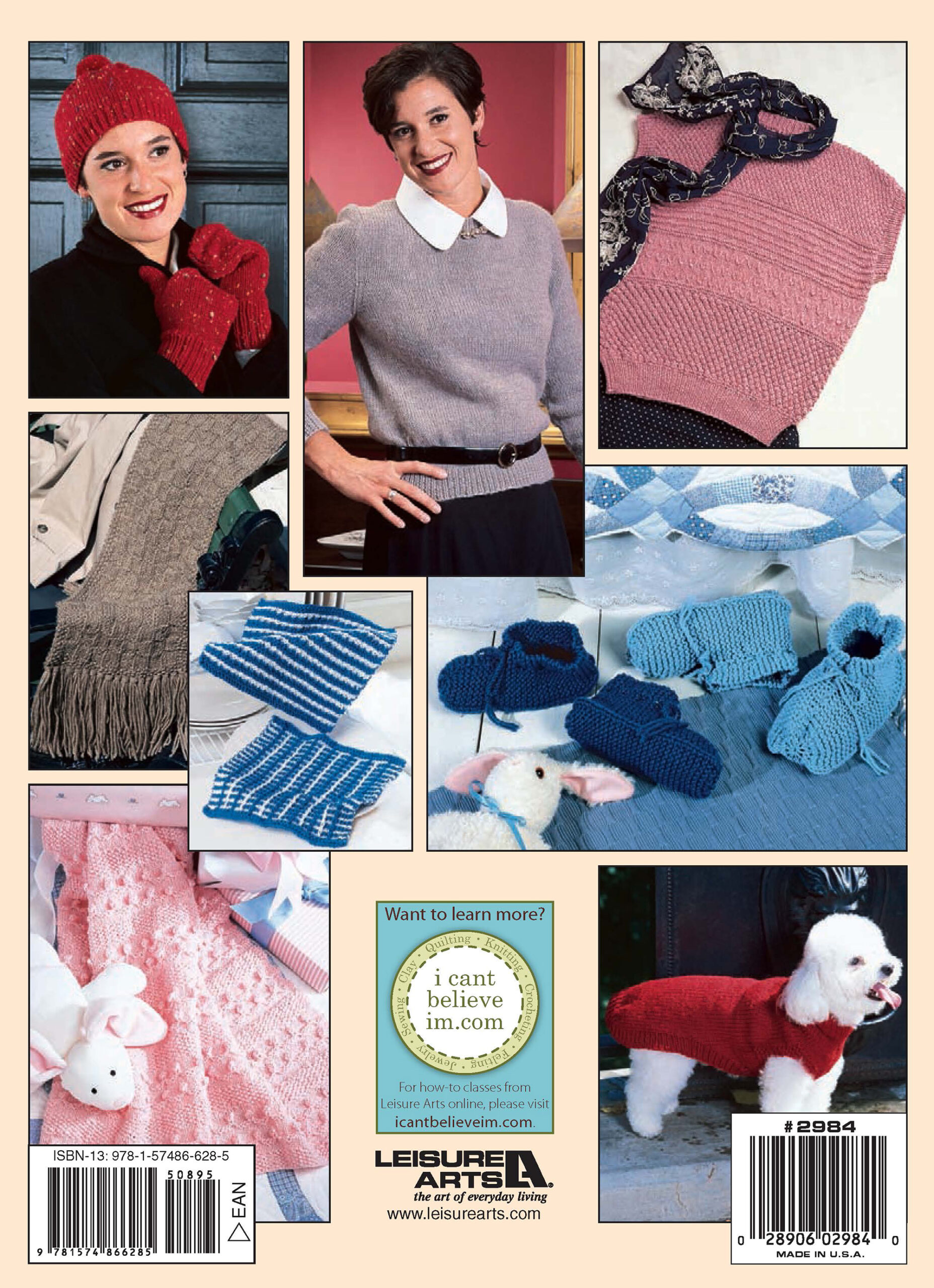 $7.99Leisure Arts I Can't Believe I'm Knitting eBook- After mastering such knitting basics as casting on, increasing, decreasing, knit, and purl, you will soon be making your own creations. Color photos and step-by-step instructions guide you through knitting the following projects: dishcloth, slippers, scarf, hat, pillow and more. A variety of yarn weights and needle sizes are used .56 pages, PDF download.