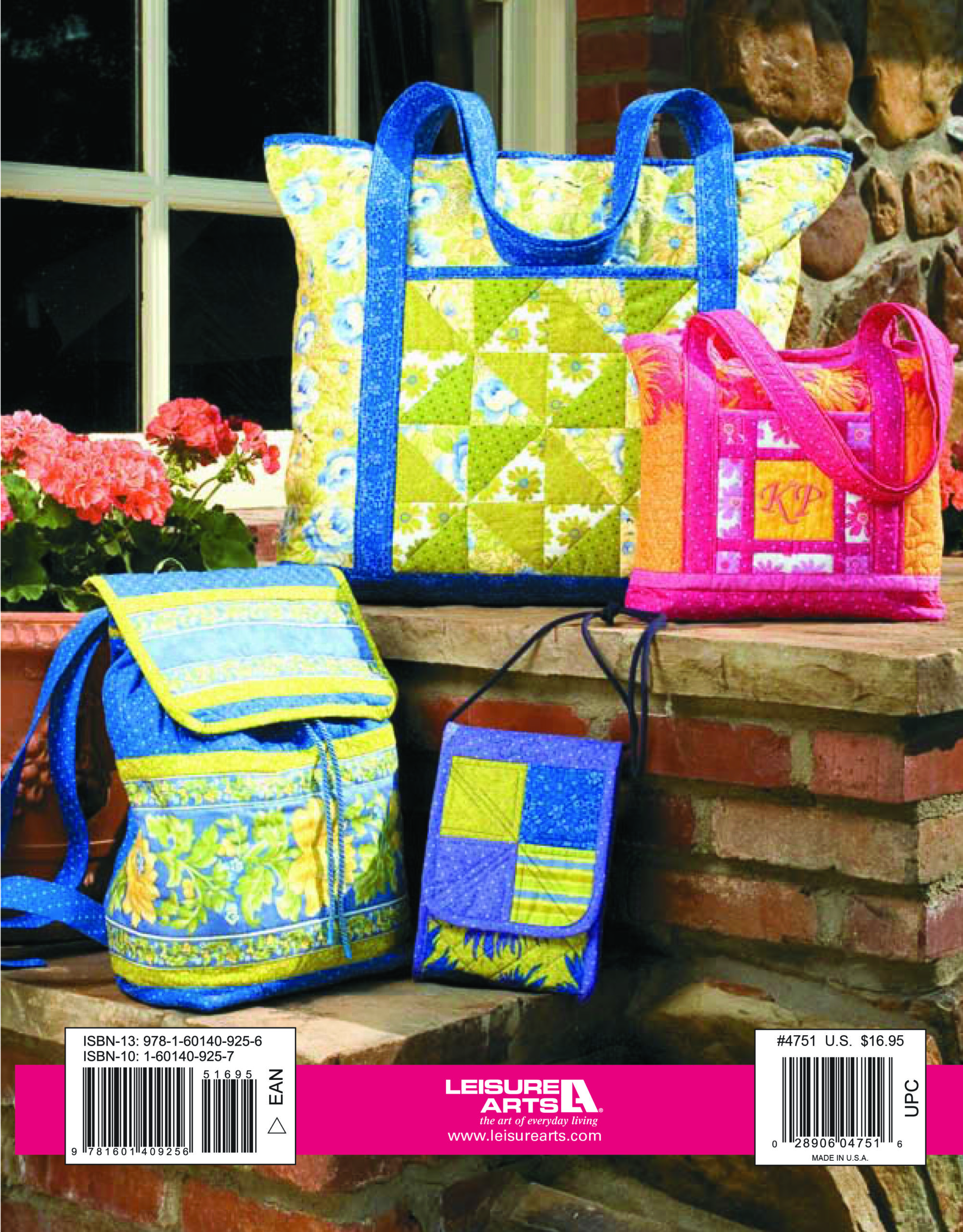 Leisure Arts Sew And Go Totes Quilt eBook- Just say "no" to the question "paper or plastic". Whether you are needing to tote groceries, art pads and supplies, gym clothes, books or even diapers, a quilted bag can handle the job. Make a pocket-size accessory bag, an oversize duffel, a feminine handbag or a backpack you'd be proud to take anywhere. All of these and more are included in the 9 projects in this must have book. 84 pages, PDF download.
