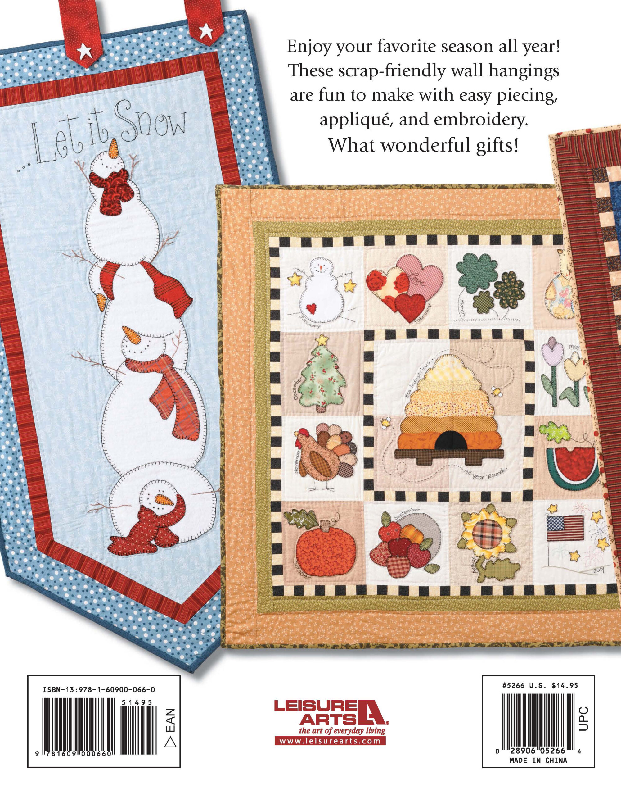 Leisure Arts Seasons & Reasons To Celebrate eBook- 6 seasonal wall hanging patterns. These adorable designs are easy to make through basic piecing, fusible applique and simple hand embroidery. Choose your favorite design and stitch your own lighthearted creation. Designs include: bee, the march, hare, America the beautiful, autumn, prairie, and hallelujah nativity. Includes step-by-step instructions, full color piecing diagrams and printable applique templates for each design. Also includes a guide to binding and finishing your quilts. Some projects are fat quarter or fat eighth friendly. Finished wall quilts measure between approximately 23"x 41" and 37"x 34". 81 pages, PDF download.