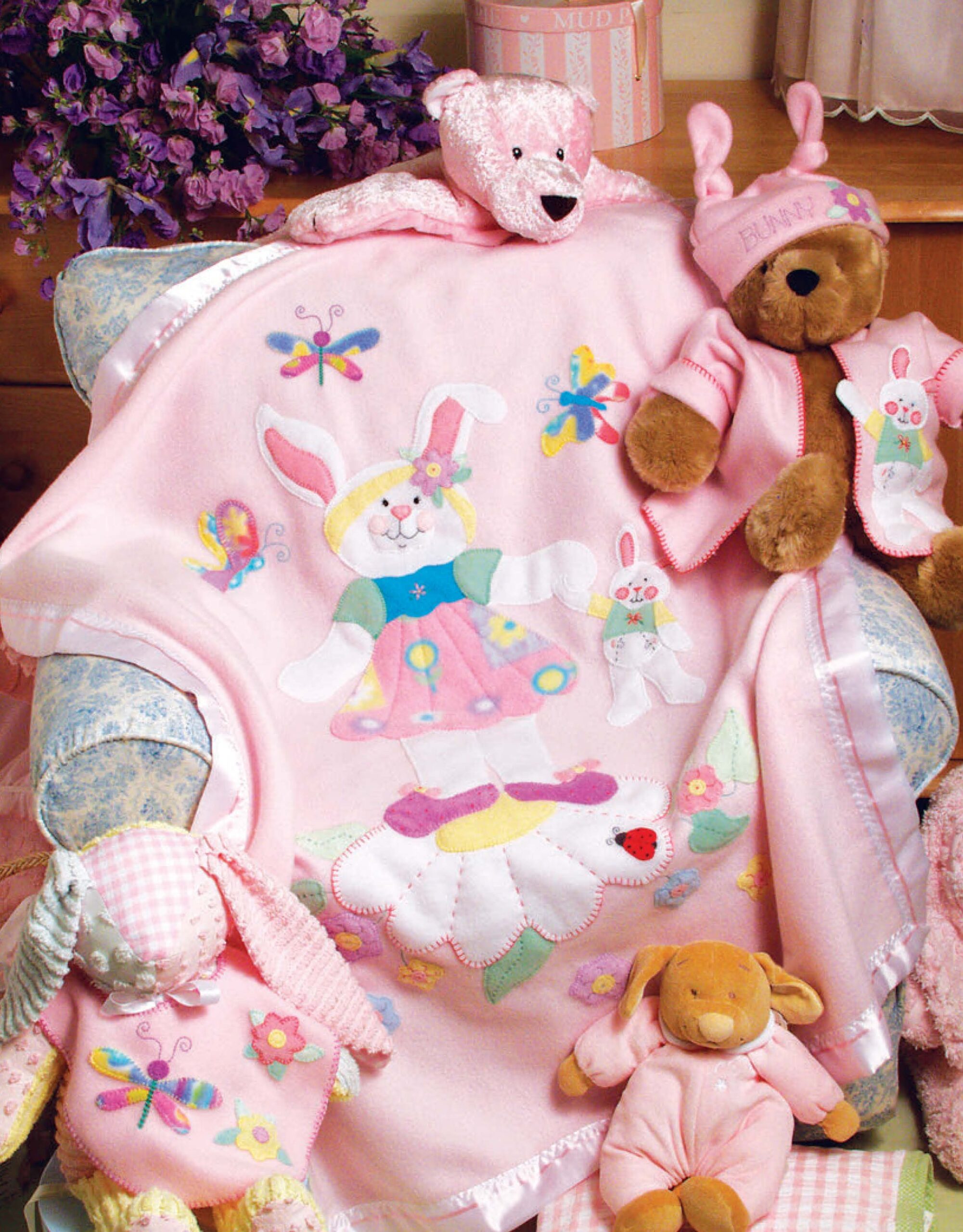 Baby Quilts & More- Here are some of the best things in life, soft and fuzzy sweet things you can make for baby. There are 18 projects to pick from, including: bunny hat and jacket, daisy pillow, quilt and bib, Teddy’s toy’s quilt, bibs, and hat, and more. Pick a project and make with soft fleece fabric in pretty pastel colors. Parents and babies alike will love this snugly fabric that is warm, yet lightweight and quick to launder and dry. Comes with pictures, patterns and complete instructions. Size is for Babies and/or Dolls. 56 pages, soft cover.