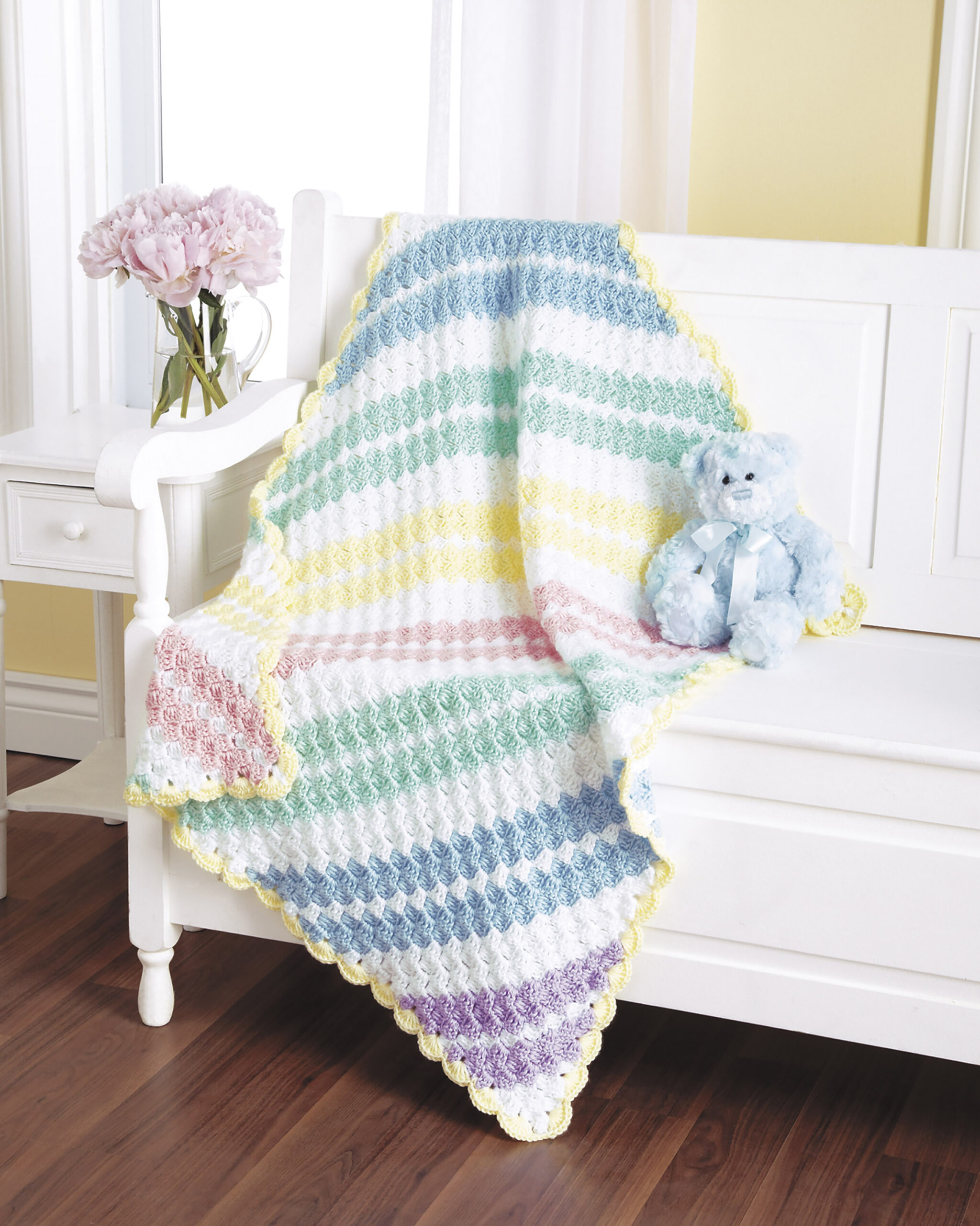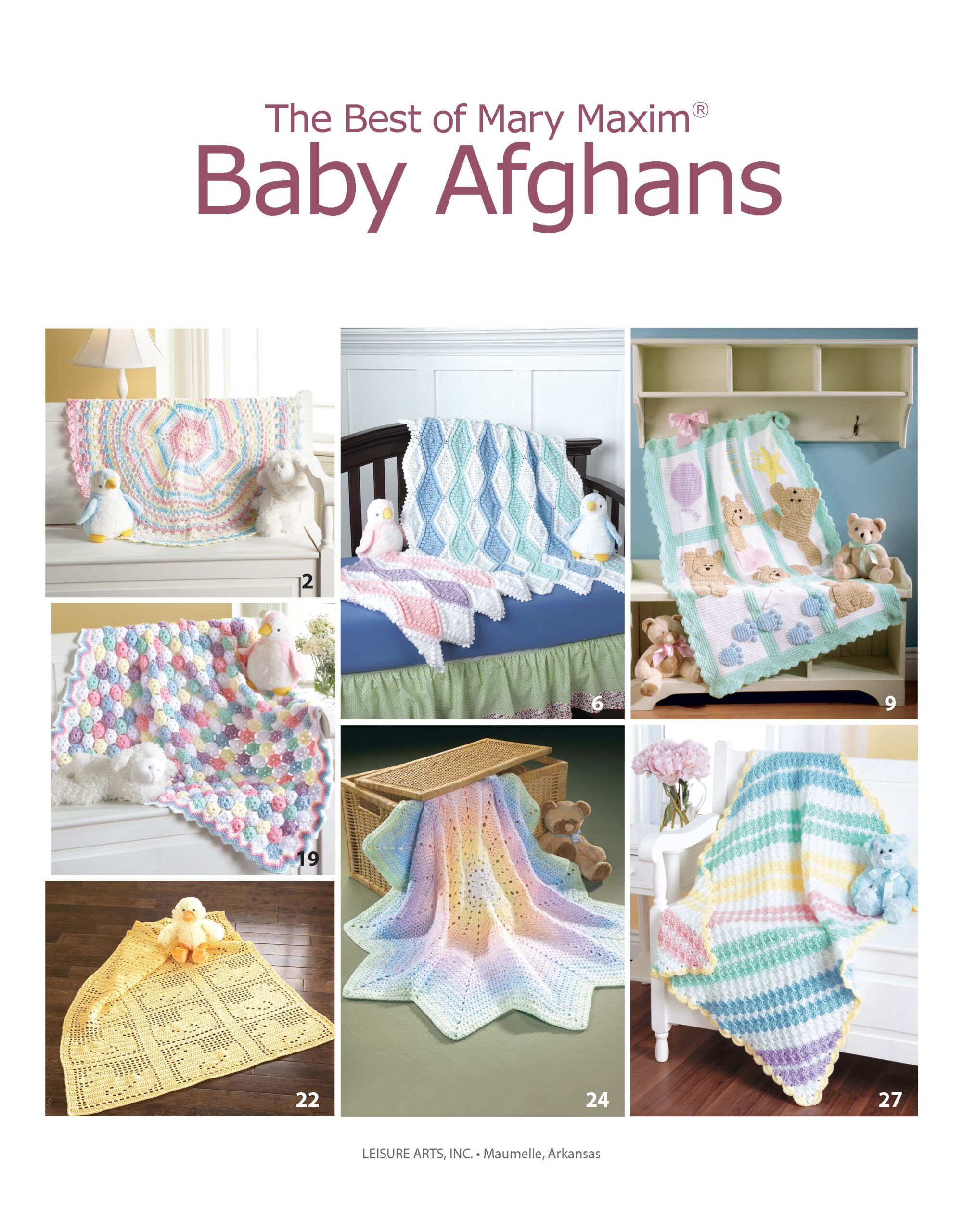 Best Of Mary Maxim Baby Afghans Crochet- The baby afghans in this collection from Mary Maxim are perfect to crochet for your little bundle of joy or to give as a treasured gift. Features seven designs to make using US size 3 sport, or 4 medium, weight yarns. Designs include: sugar spun blanket, baby diamonds blanket, bears on my blanket, tiny bubbles blanket, duckies blanket, peaceful pastels afghan and baby diagonal blanket. Patterns range from beginner to intermediate skill level with a section of general crochet instructions and diagrams. Hook size recommendations range between US sizes E-4 and K 10.5; 3 1/2 to 7 millimeters. Finished sizes measure between approximately 36″x 36″ and 50″x 50″. 32 pages, softcover.
