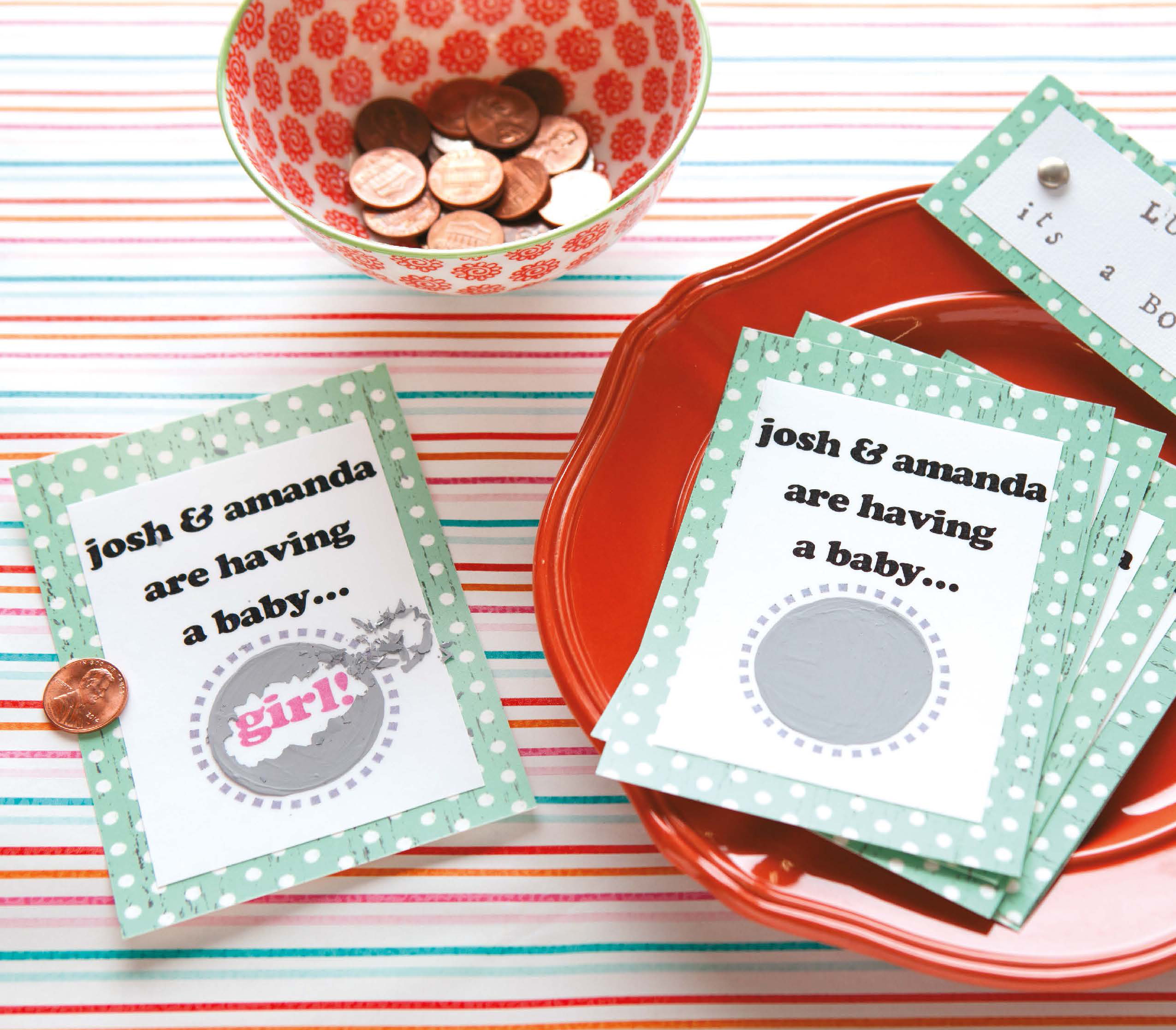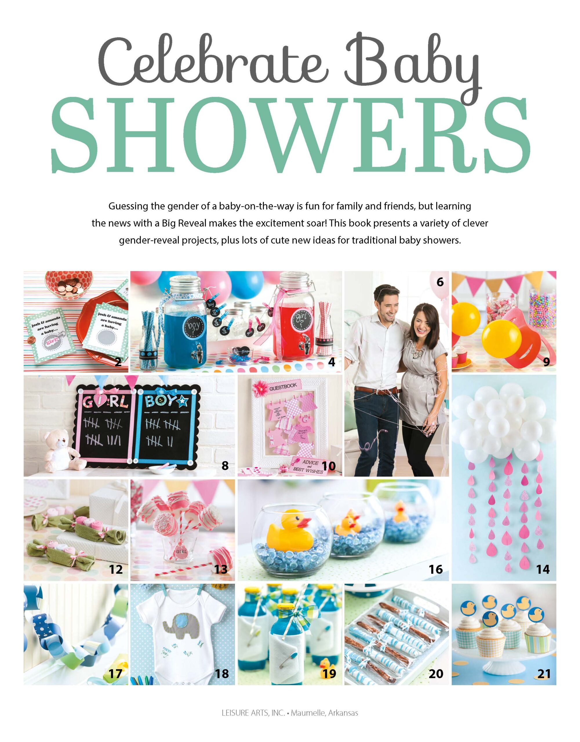 Celebrate Baby Showers- Guessing the gender of a baby-on-the-way is fun for family and friends, but learning the news through a big reveal makes the excitement soar. Learn how to make a variety of clever gender-reveal projects, plus lots of cute new ideas for your baby shower. Projects include: scratch-off cards, silly string reveal, pacifier table decor, diaper drink cozy, and more. 24 pages in a softcover.