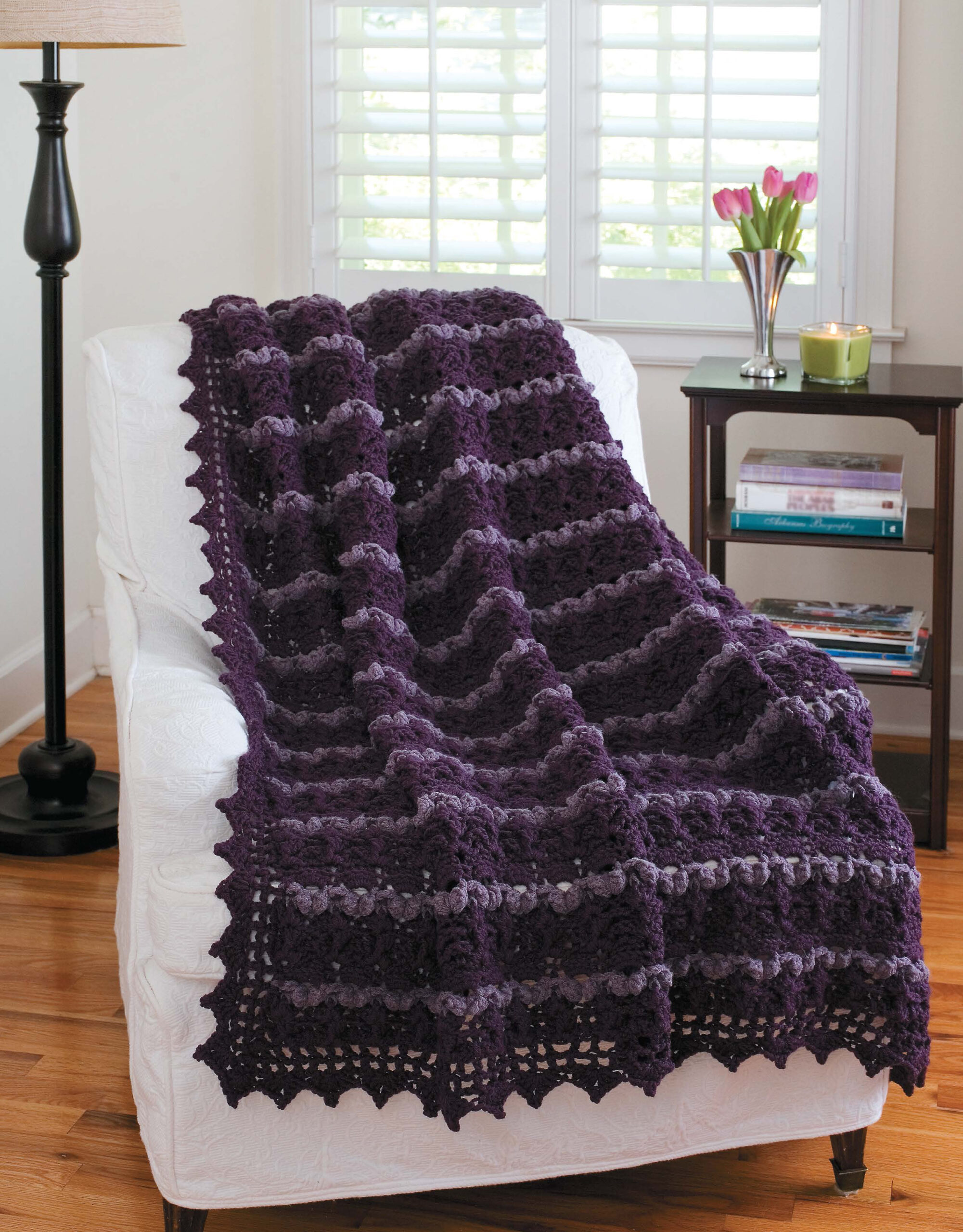 Contemporary Cottage Afghans Crochet- Whether it’s winter and you want a warm crocheted afghan or maybe it’s springtime and you only need a light and lacy crocheted throw, there’s a blanket in this crochet collection that will not only give you the right amount of comfort, but also add style to your home decor. Choose from five original crochet designs to fashion the afghan that’s just right for you and for your home. Designs include: white lace, plum nice, ocean blue, sweet tangerine, and green leaves. Uses long double, treble, front post, back post, and popcorn stitches. Projects call for size 4 worsted weight yarn and a US size J-10, 6mm, crochet hook. Includes step-by-step instructions for each designs and a brief general guide to crochet. Finished afghans measure between approximately 51 1/2″x 76″ and 57″x 73 1/2″. Intermediate skill level. 20 pages in a softcover.