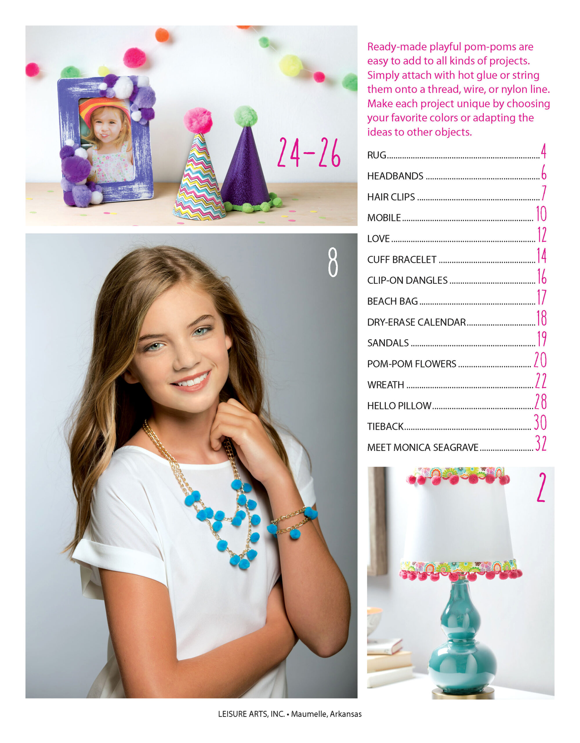 $7.99Leisure Arts Learn to Create with Pom-poms Book- It's so easy to create pom pom crafts. You just need basic supplies and you'll be creating in no time. Tips, tricks, and techniques help guide you on your way to making pom pom masterpieces. Designs include: magnets, crowns, pillows, pencil toppers, and more. 24 pages, soft cover.