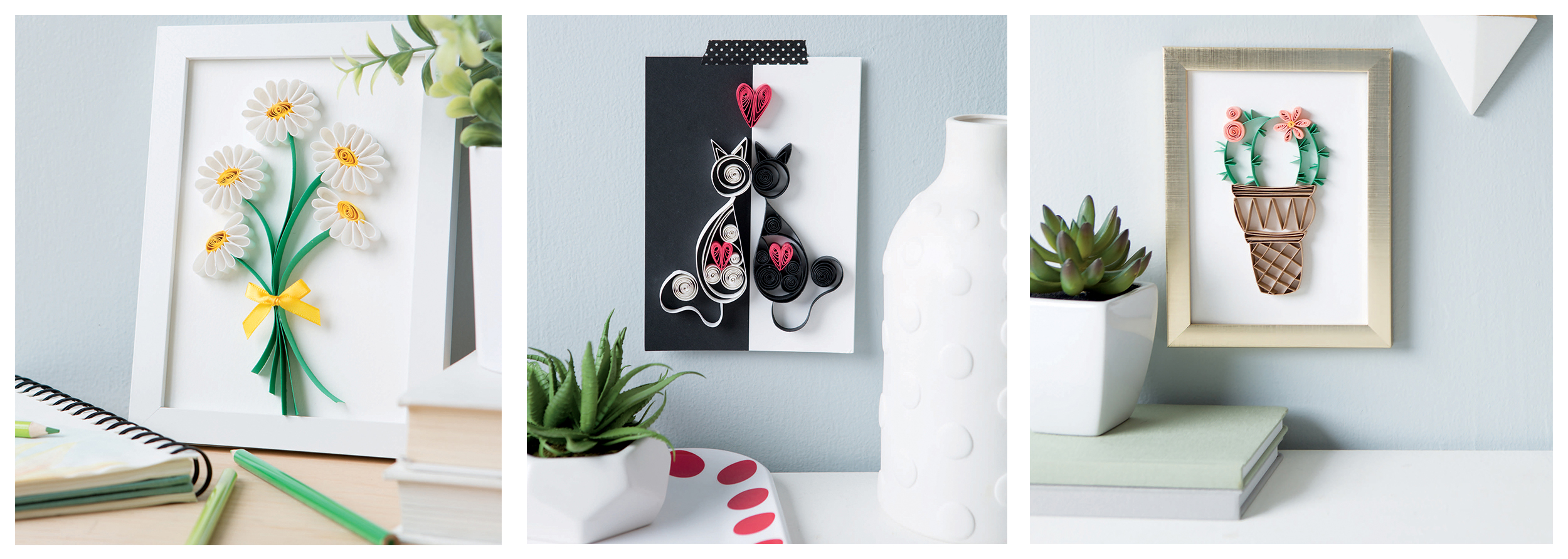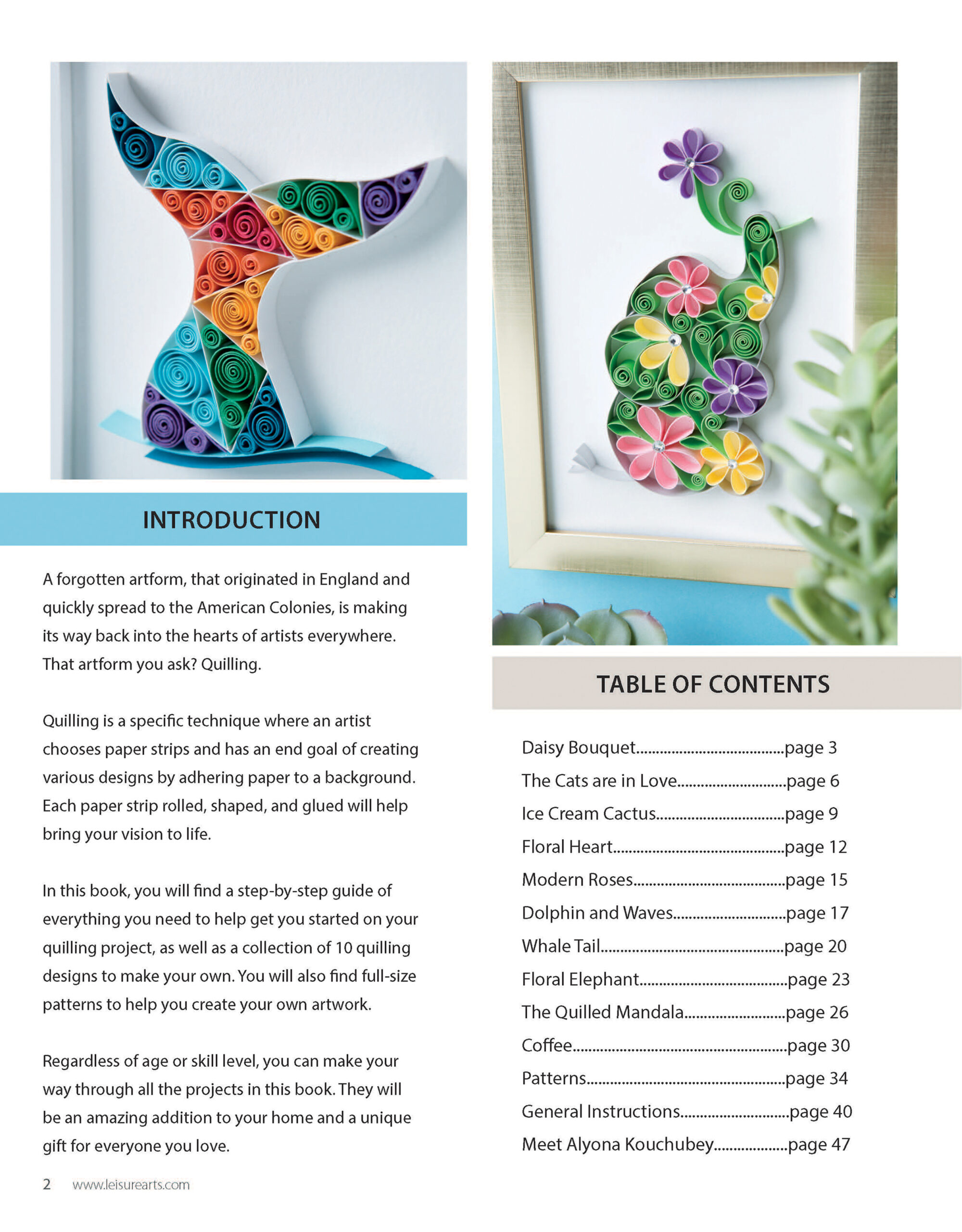 Quilling for Beginners- This collection of 10 unique, practical quilling designs are perfect for beginners. Ten projects to shape and make your own. Step-by-step instructions and illustrations take all the guess work out of this craft. When creating your own designs, you’ll be able to decorate your home or give your creation as a gift to someone special. Designs include: coffee, dolphin, daisies, cats, and more. 48 pages, soft cover.