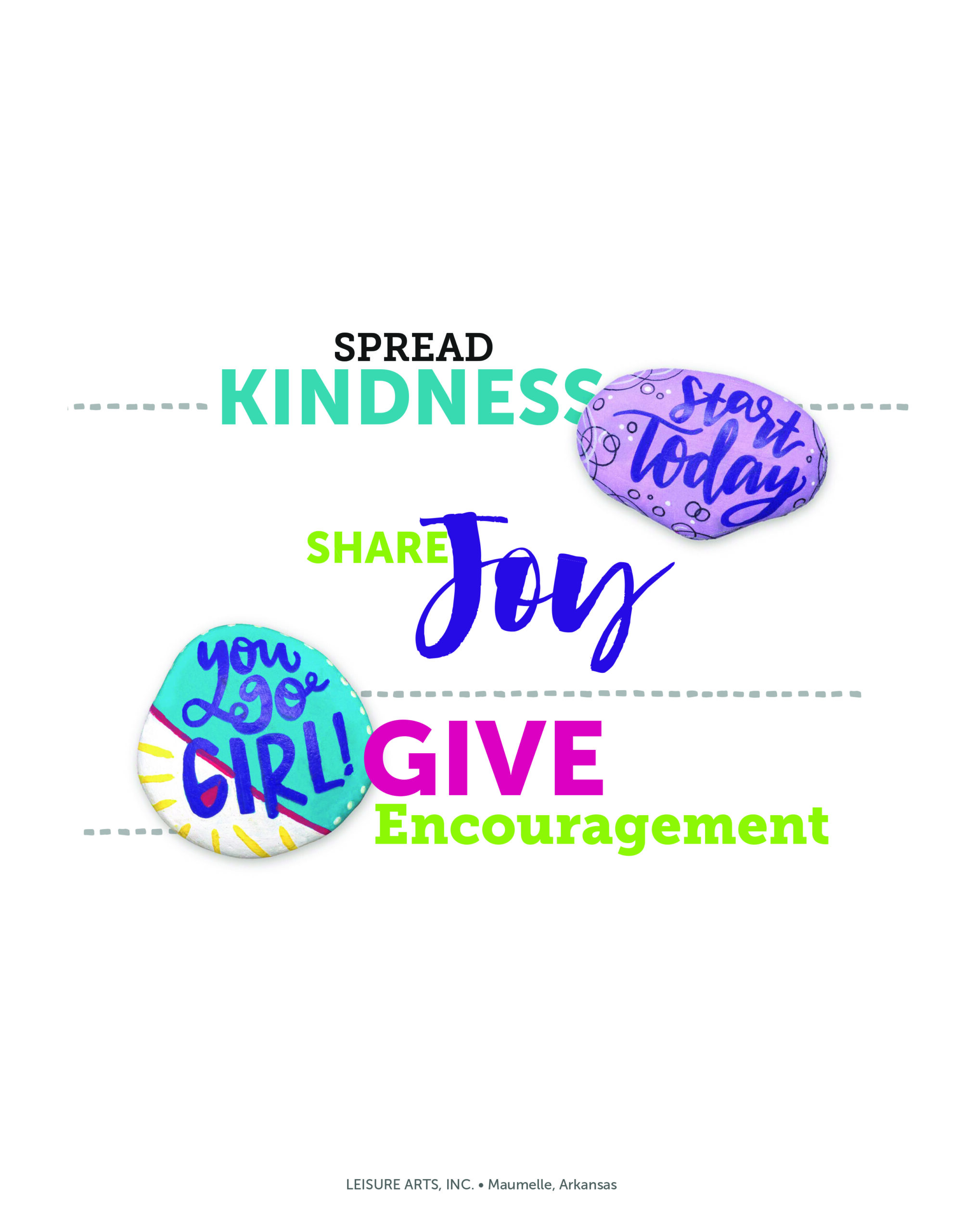 Rockin’ Dots- There’s no better way to spend your free time than by spreading a little kindness, joy, and encouragement. These rock designs are easy, inexpensive, and only made better with the addition of Diamond Art jewels. Step-by-step instructions for painting, hand-lettering, and dotting are included along-side practice pages with 4 different calligraphy fonts. Designs include: sassy rocks, inspiration rocks, love rocks, faith rocks, and motivation rocks. Required materials include: small rocks, acrylic paint, small and medium synthetic paint brushes, fine tip markers, pencils, Mod Podge clear color sealer, Diamond Dotz tools and Diamond Dotz gems. Beginner skill level. 48 pages, softcover.