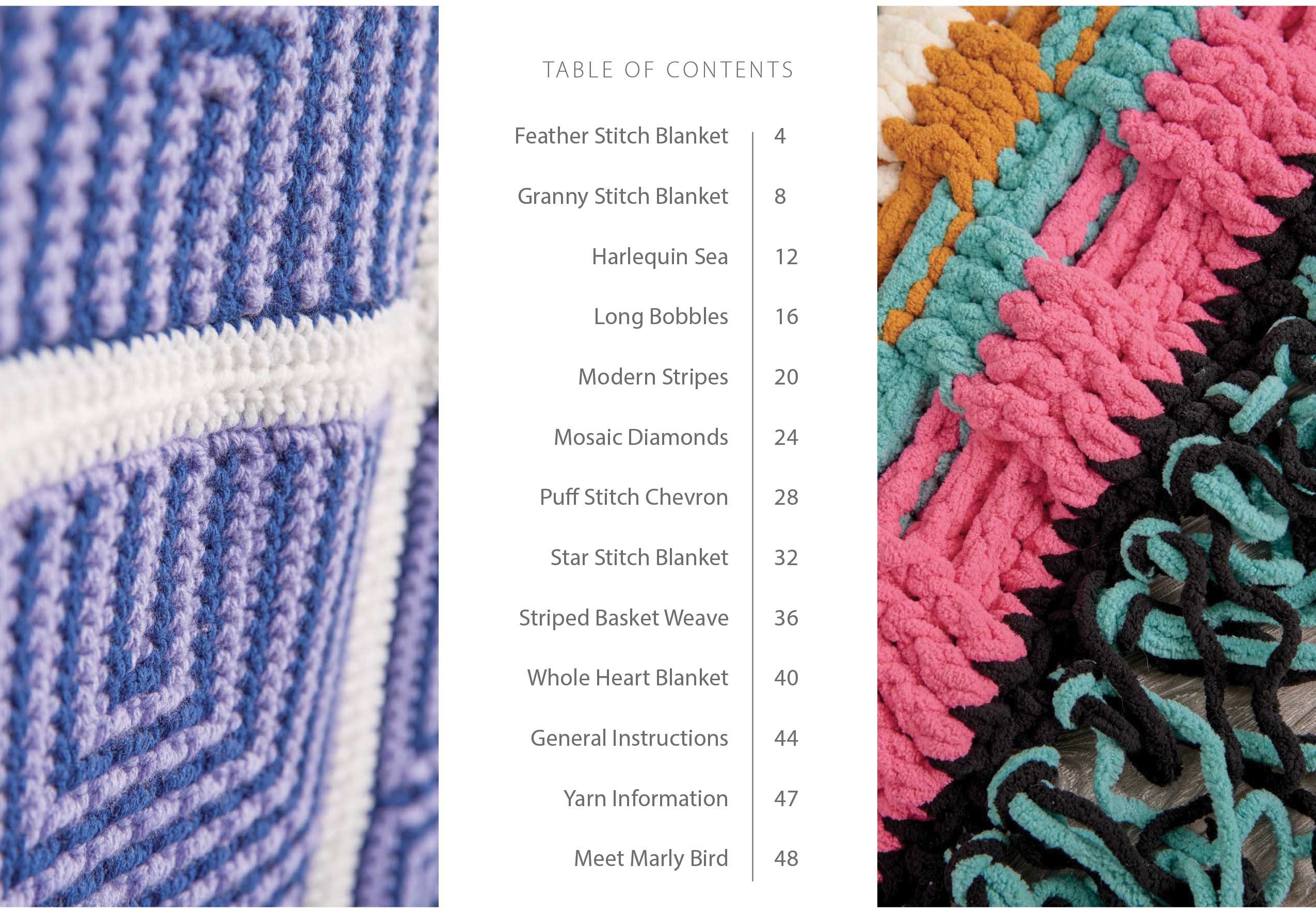Crochet Simple Baby Blankets- A variety to choose from, a lifetime of comfort snuggles. Learn how to crochet each of these afghans with ease as you walk through the assembly instructions with color photos and diagrams. Whether you wrap your bundle of joy in it or give it as a gift, there’s a blanket design for everyone. Designs include: granny stitch, long bobbles, mosaic diamonds, star stitch, and more. All crocheted using 4 medium weight yarn and sizes G, 4mm; H, 5mm; I, 5.5mm; J, 6mm; M/N, 9mm hooks. Beginner friendly. 48 pages, softcover.