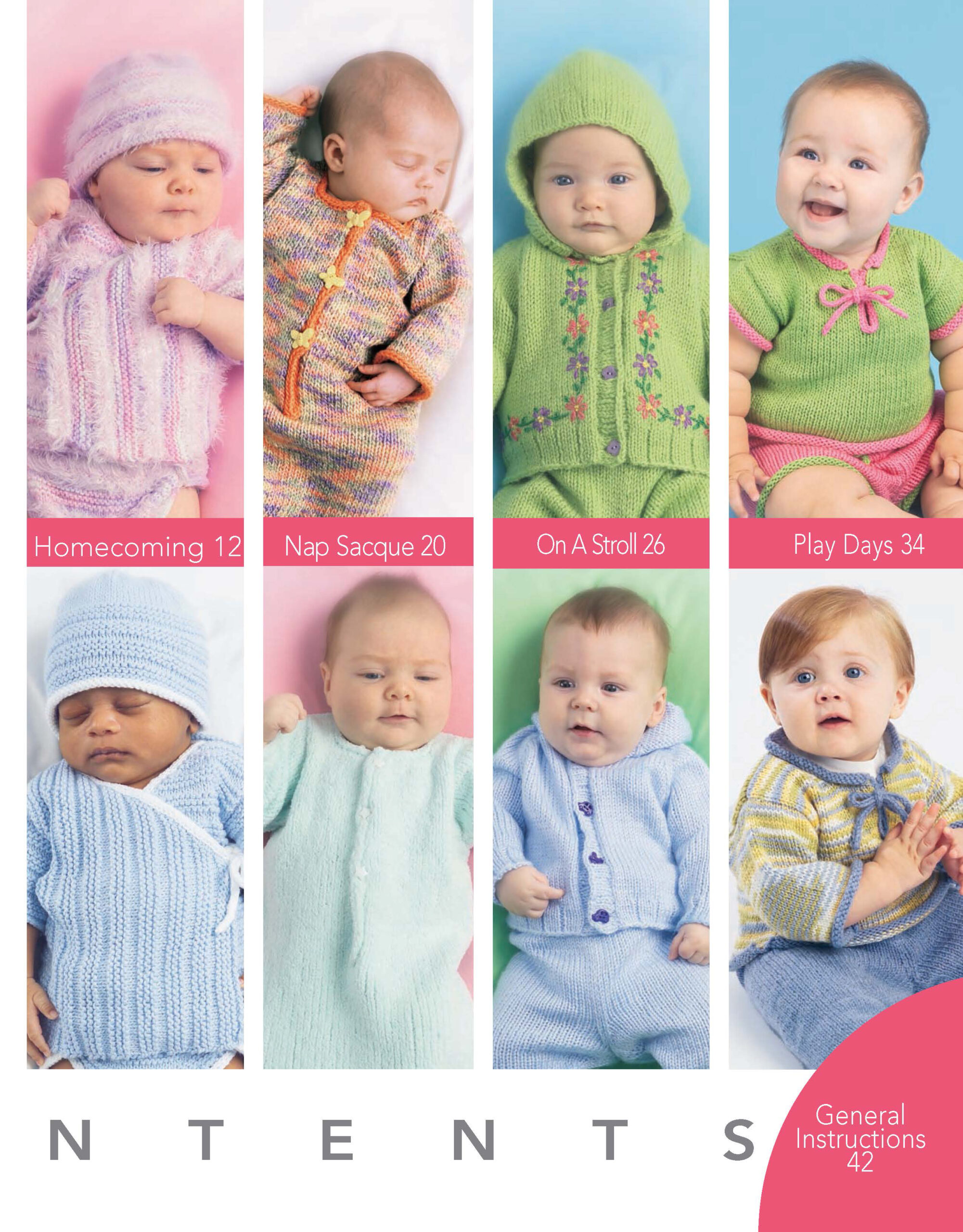 Baby Options Same Pattern 2 Looks Knit- With this, your knitting success has practically already begun. The thorough instructions and gorgeous, high-quality photos in these 5 designs combine to eliminate guesswork and show you what the finished product will look like in a variety of colors and yarns. You’ll have the most stylish toddler on the playground. Designs include: homecoming, nap sacque, play days, on a stroll, and it’s a girl. 48 pages, soft cover.