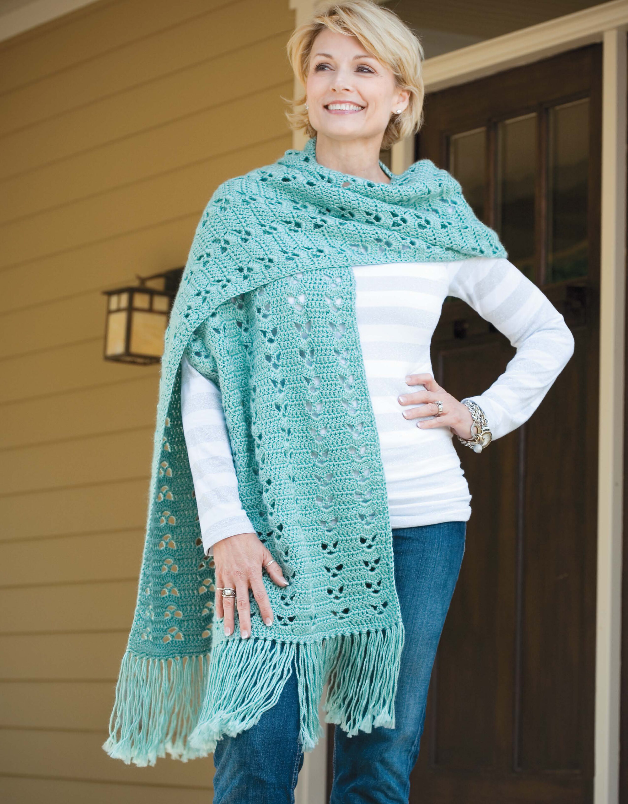 Learn A Stitch Create A Scarf Crochet- You can create a marvelous muffler, scarves, and even a shawl, at the same time you experience the fun of learning new pattern stitches. Just think of all the original afghans, wraps, lap blankets, and bed throws you could fashion with the 22 stitches used in these 12 projects. Plus, there are beautiful fringes, tassels, and other finishing ideas to make all your crochet projects unique. Designs include: tri-color larksfoot scarf, openwork shawl, star stitch sash, Louis xv scarf and more. All projects use size 3 light or size 4 medium weight yarns and US size F-5 through K-10 1/2 crochet hooks. Includes step-by-step instructions for each project and new stitch introduced with full color photos of each stitch pattern. Easy to intermediate skill level. 56 pages in a softcover.
