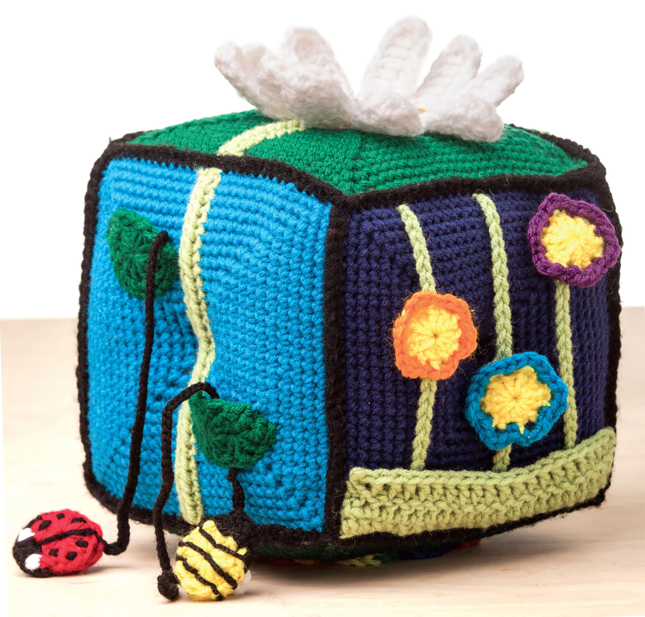 Leisure Arts Play & Learn Activity Cubes Book- Crochet storytelling cubes with fun attachments and secret pockets. Take them from flower-filled meadows to the depths of the ocean with these crochet activity cubes. With everything from secret pockets to mirrors, your tot will love exploring each side of the cube. Includes: instructions, tips for success, templates, and more. Learn to crochet while giving them something to spark their love for learning and exploring. 48 pages in a softcover.