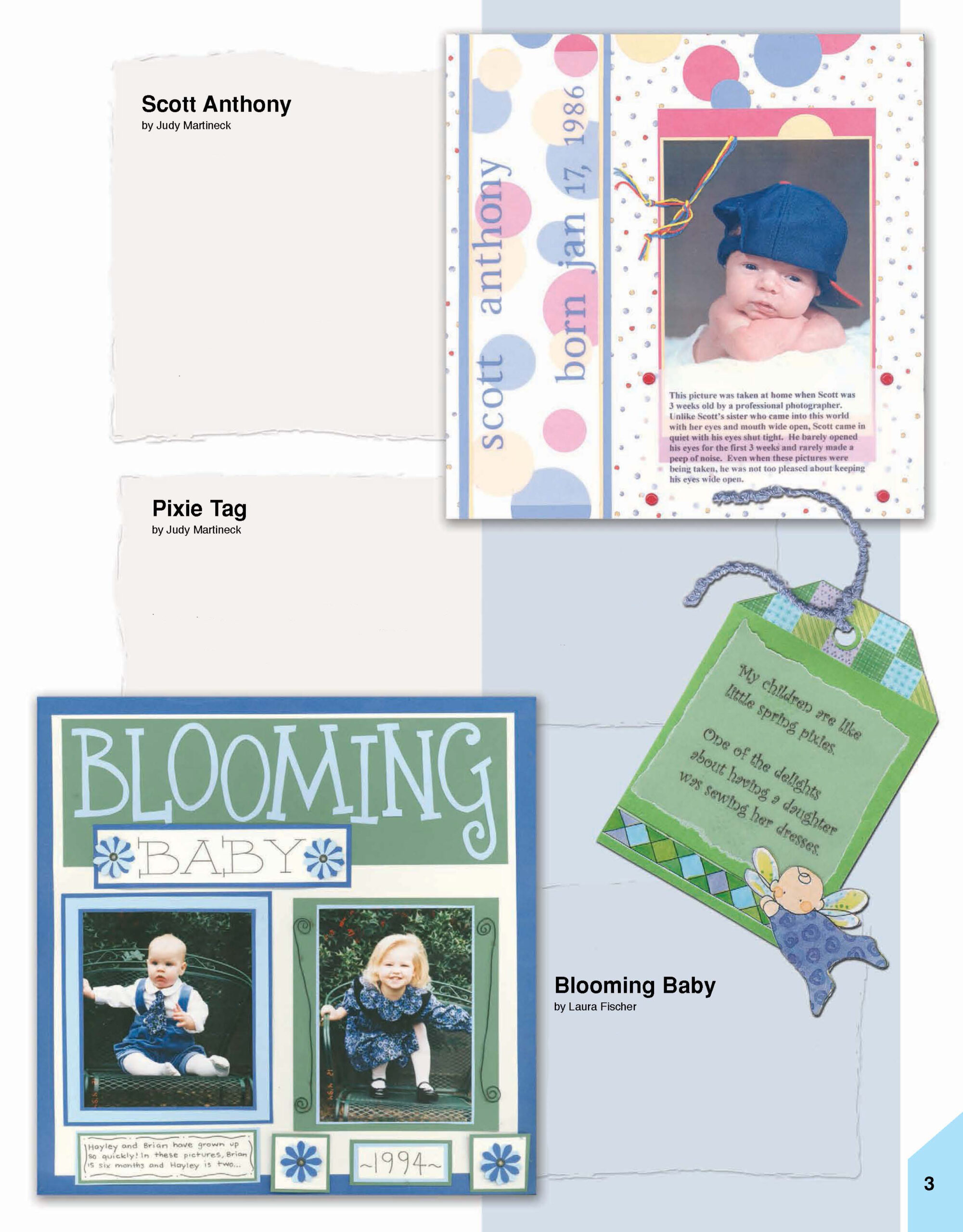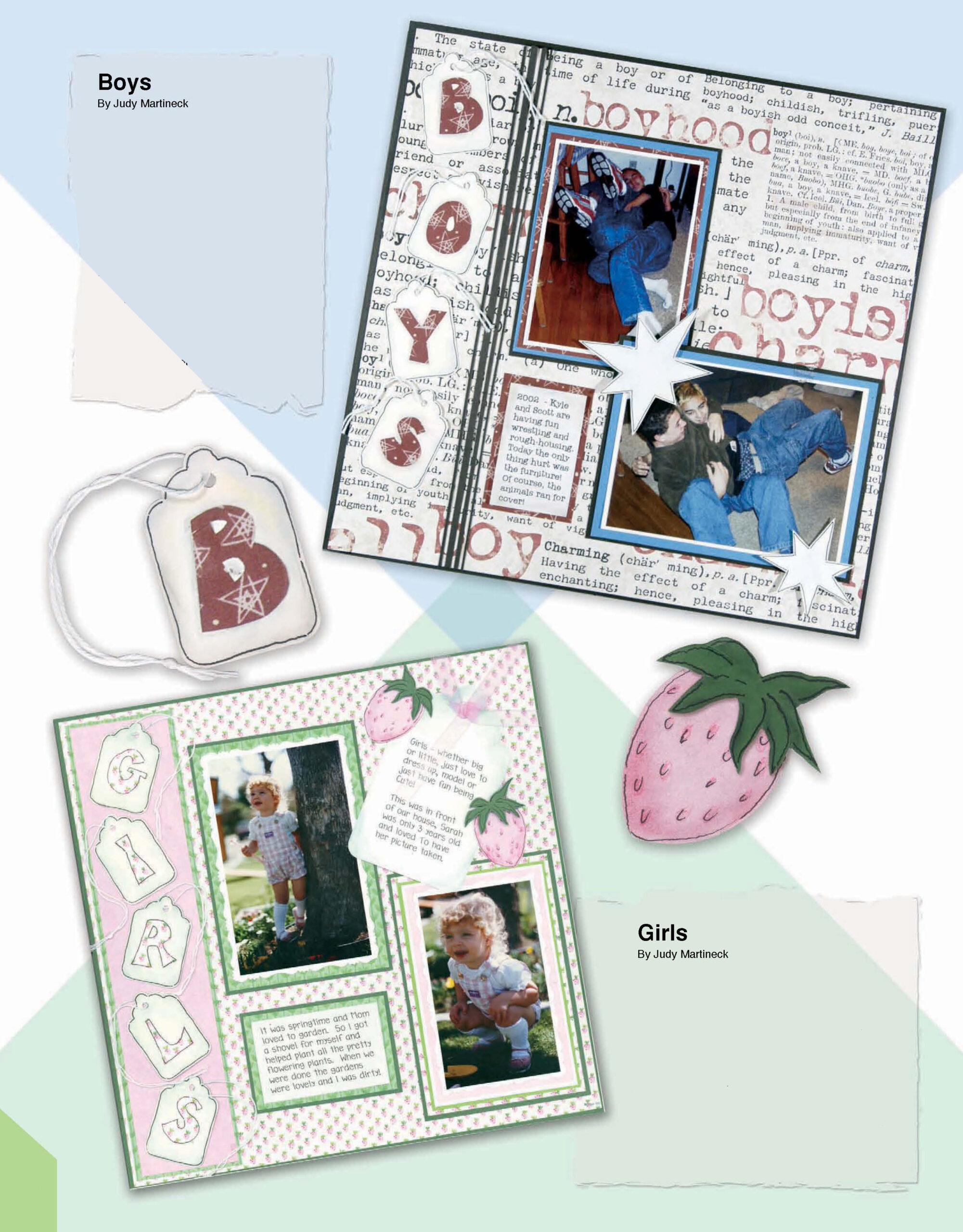 Leisure Arts Scrapbook Sampler Tips, Tags, & Titles eBook- Unique ideas that add pizzazz to your pages turn the ordinary into the extraordinary. This scrapbook sampler includes inspirational designs for creating spring, summertime, family, fall, winter and kid themed pages. Individual designs include: diaper, dream, pixie tag, delightful, envelope, adorable boy, the dancer, he loves me, the photoshoot, down by the sea and many more. Step-by-step instructions and supplies lists included. 98 pages, PDF download.