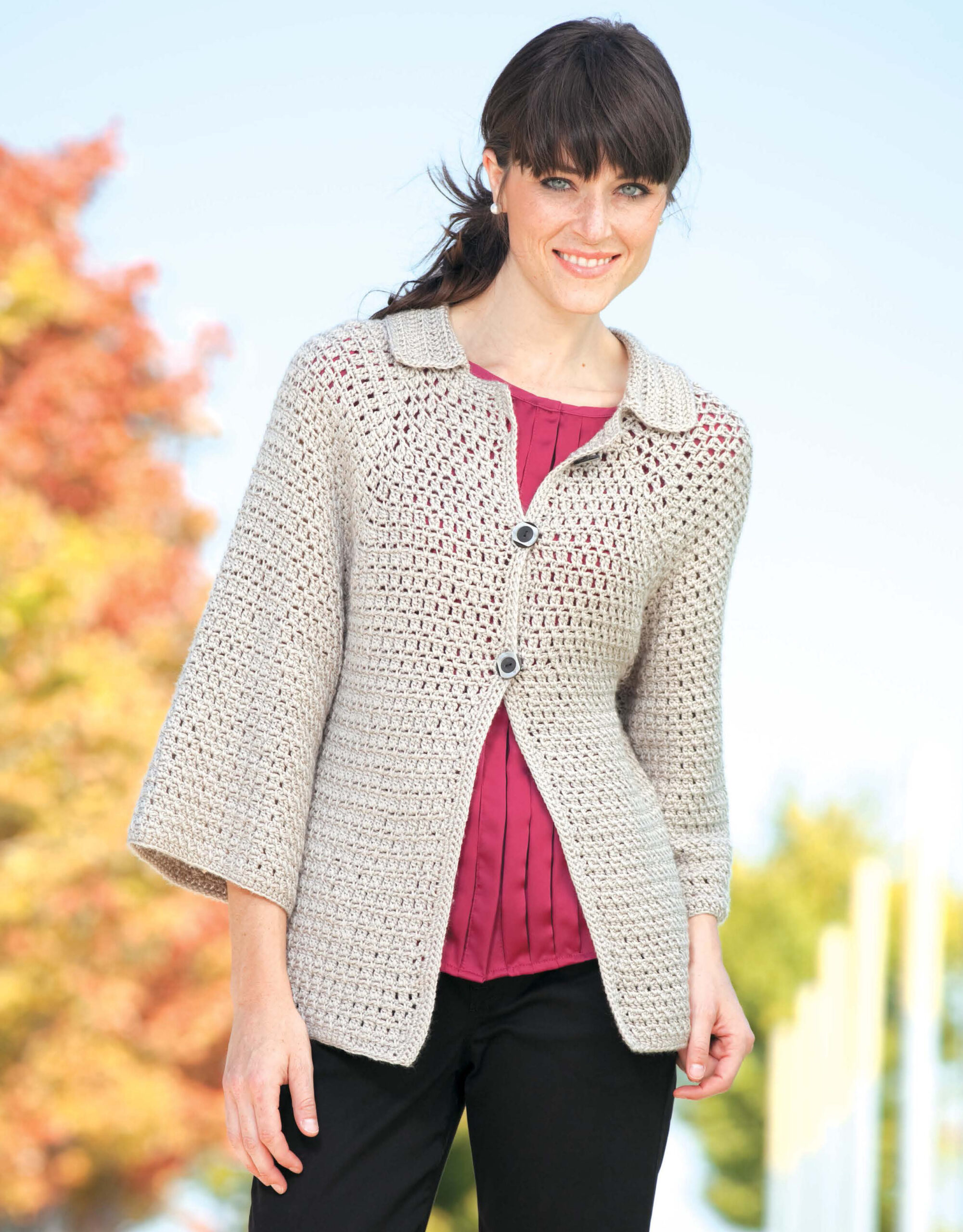 Leisure Arts Unforgettable Crochet eBook- 6 unique crochet fashions that are sure to be unforgettable. With pattern laced, lovely textures and multi-functional silhouettes these crochet tops will add a unique touch to your wardrobe. Designs include: lacy cardi, cutaway vest, 3-way wrap, scallop-edge vest, chic motif cape, and bracelet length cardi. Projects call for size 3 light and 4 worsted weight yarns and crochet hooks in US sizes G-6, H-8 and I-9. Includes step-by-step instructions for each design and sizing options for US Women’s sizes X-Small through XX-Large. Sizing options fit chests measuring between approximately 29″ and 49″. Easy to intermediate skill level. 42 pages, PDF download.