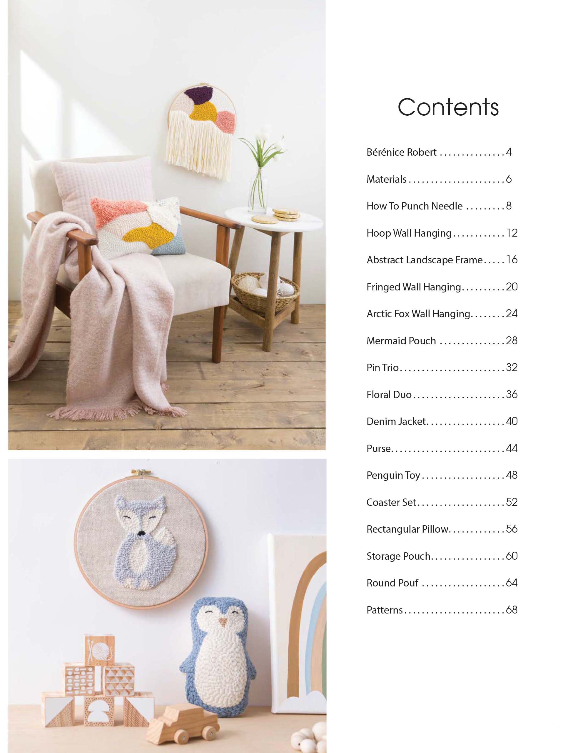 Modern Punch Needle- Punch out some new accessories for your home and yourself with these easy-to-follow projects. With only 3 types of stitches and 3 materials, the art of punch needle is easy to master and full of possibilities. Projects include: abstract landscape frame, arctic fox wall hanging, mermaid pouch, pin trio, penguin toy, purse and more. Projects call for US size 1 super fine, 4 medium and 5 bulky weight yarns as well as a wide variety of punch needle sizes and types. Includes a full guide to materials, tools, threading punch needles, setting up your hoop or frame, transferring patterns, stitches and finishing each project. Includes traceable templates for each punch design. Most templates require resizing through a photocopier. Finished projects measure between approximately 1 1/2″ and 15 3/8″x 9″. Beginner skill level. 80 pages in a softcover.
