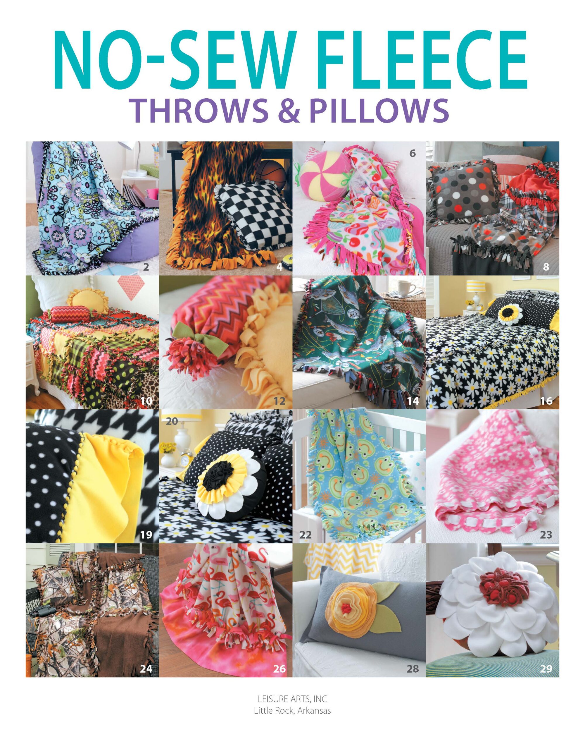 No Sew Fleece Throws & Pillows- Now there are more reasons than ever to love fleece. This is chock-full of new ideas for using your favorite ultra-soft fabric to decorate your home, without sewing a stitch because many of the layers are, believe it or not, tied together! There are fast-to-finish throws with a variety of edge treatments, a rag-tied patchwork quilt, a duvet cover with coordinating pillowcases, and all shapes of pretty pillows. Exciting prints and colors make shopping for fleece so much fun. You’ll want to make these projects for everyone you know. 32 pages, soft cover.