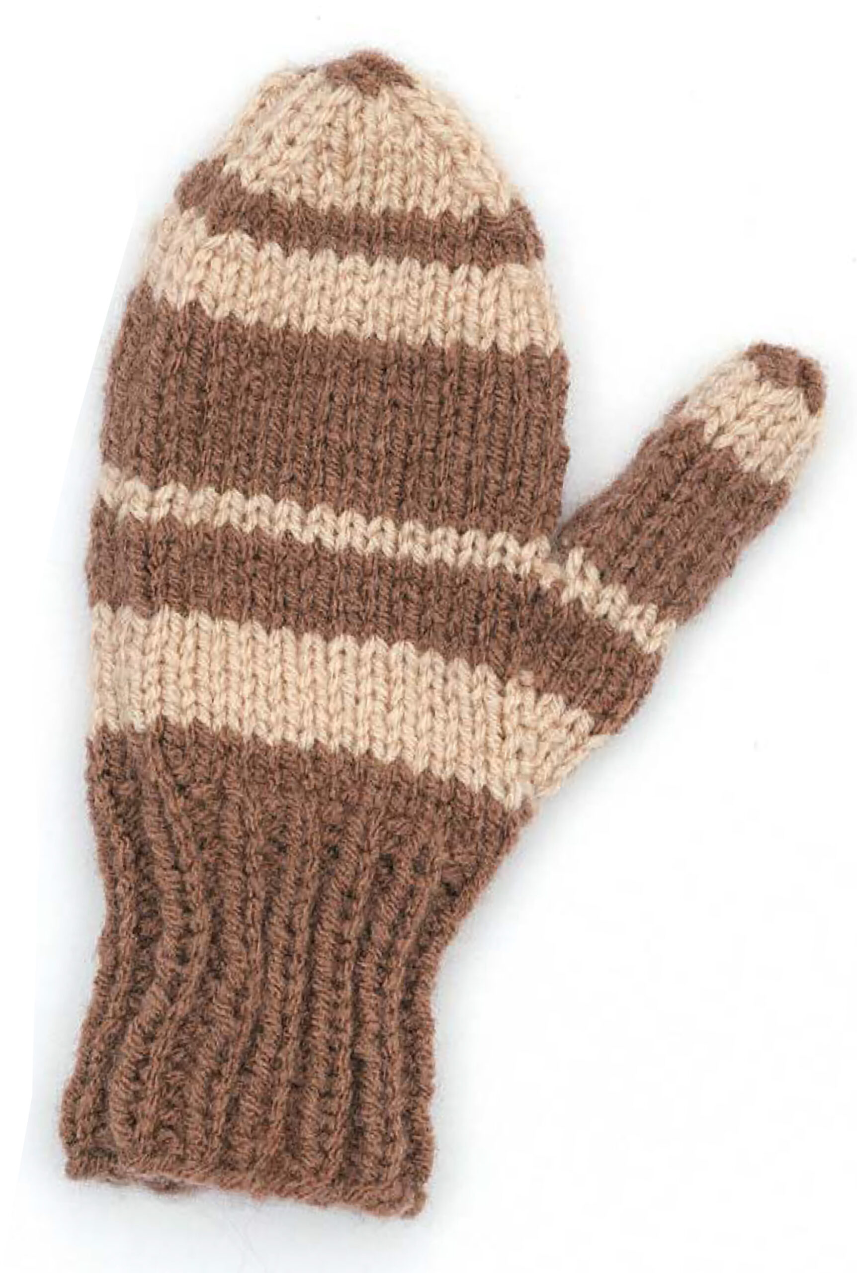 Quick & Easy Mittens To Knit- 9 sizes to knit or Knook. Knitting mittens for everyone in the family has never been easier. Clear instructions and photos guide you through two methods: choose from using two traditional straight needles or the Knook, a specialized crochet hook that creates true knitted fabric. Great for using medium-weight scrap yarns, the basic mitten pattern is written for nine sizes, palm circumference of 5 to 9 inches. Colorways include: the basic solid color mitten, 2, 3, or 4 colors, multi color, and many striped versions. Easy skill level. 48 pages, softover pocket size.