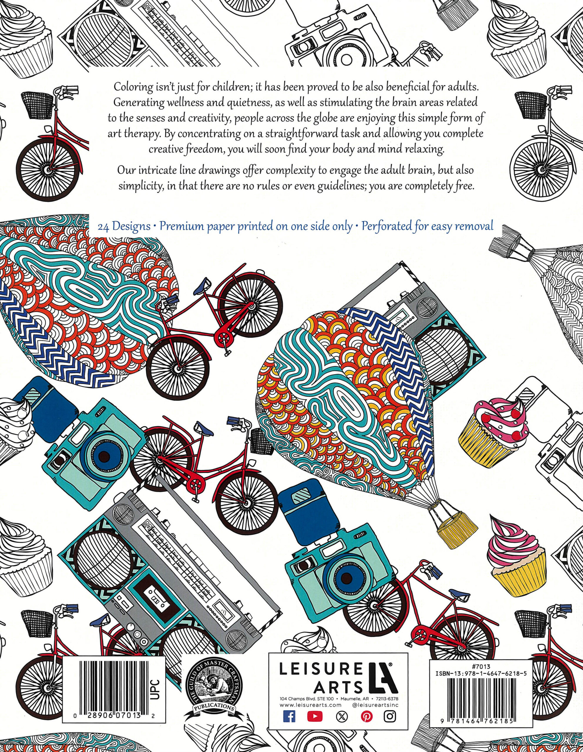 Leisure Arts Hobby Wonders Color Art For Everyone Coloring Book- Explore a new way to enjoy your favorite hobbies with 24 intricate line drawings that allow you to express your passions in a whole new way. The premium quality, perforated pages make them easy to display. Designs include: gardening, books, cameras, hot air balloons, mopeds, skates, sewing thread, records, instruments, luggage, scuba gear, art supplies, movie reels, surf boards, camping gear, snorkels, fishing tackle, exercise equipment, sport gear, and more. 50 pages in a softcover.